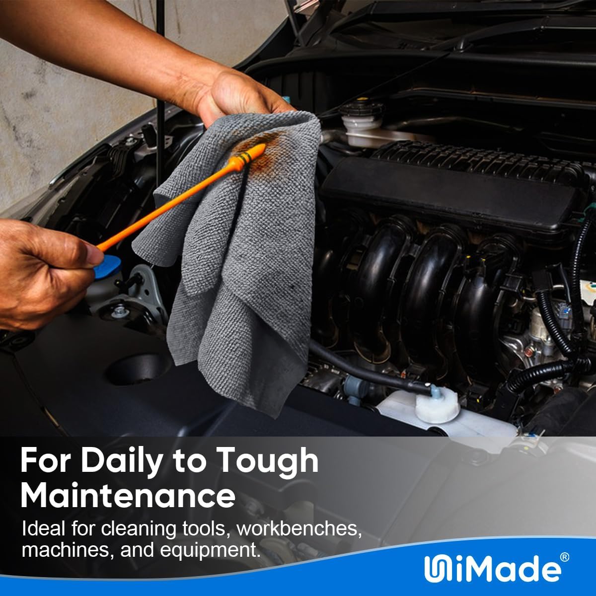 - Super Absorbent& Quick Dry: Crafted from premium microfiber, UNIMADE cleaning rags excel in soaking up oils, liquids, and workshop spills. Their highly absorbent qualities enhance their effectiveness in removing stubborn grime and grease