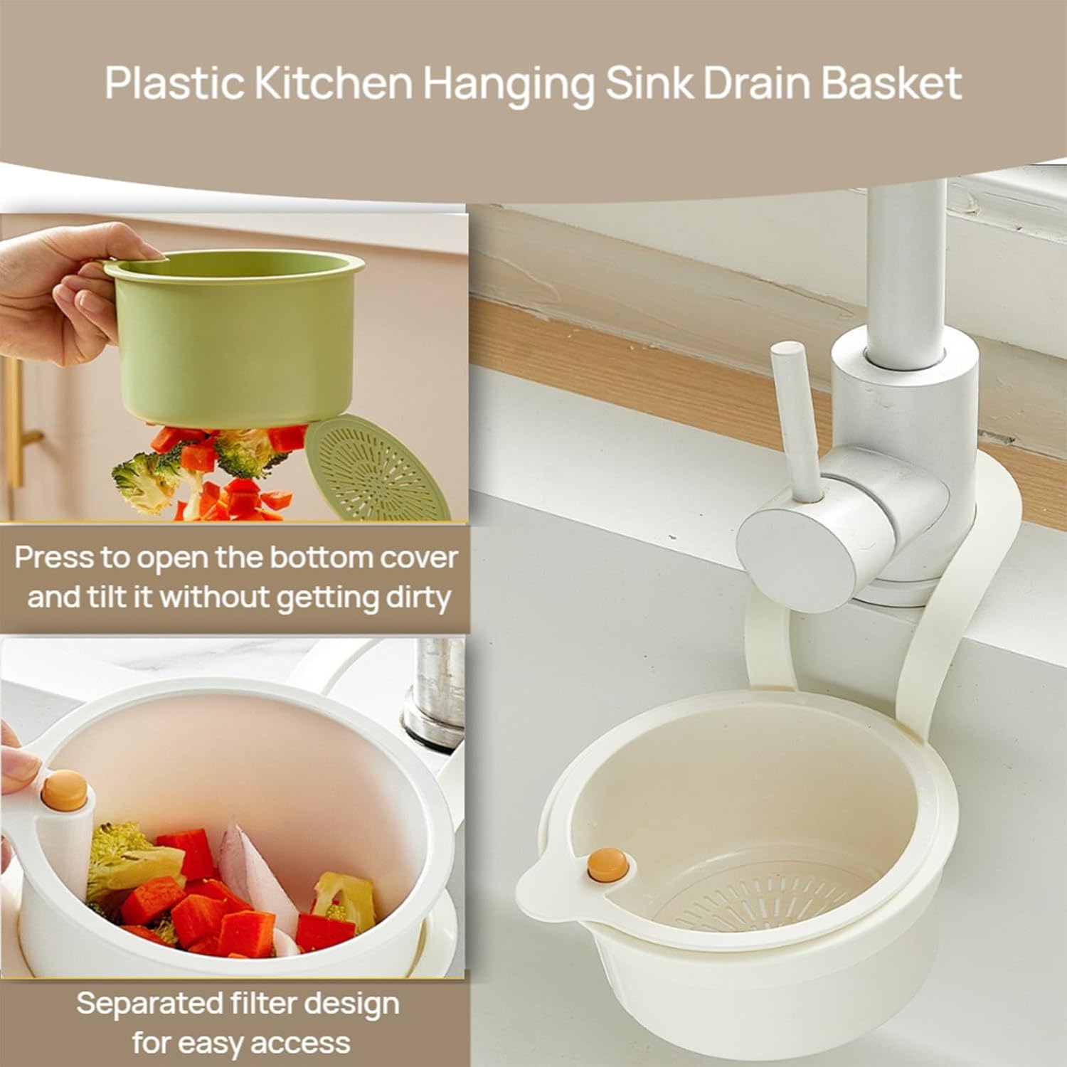 Faucet Hanging Strainer Kitchen Sink Food Waste Catcher Drain Basket, Plastic Kitchen Sink Strainer Automatic Dumping Draining Basket, Food Fruit Vegetable Drain Shelf Sink Storage Holder (White)