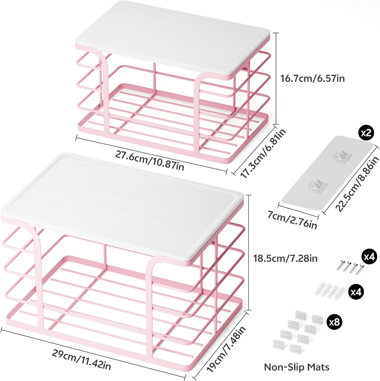 2 Pack Extra Large Stackable Pantry Storage with Bamboo Top,Wall Mount Trash Bag Dispenser Roll Holder for Kitchen Pantry Laundry Room,Pink