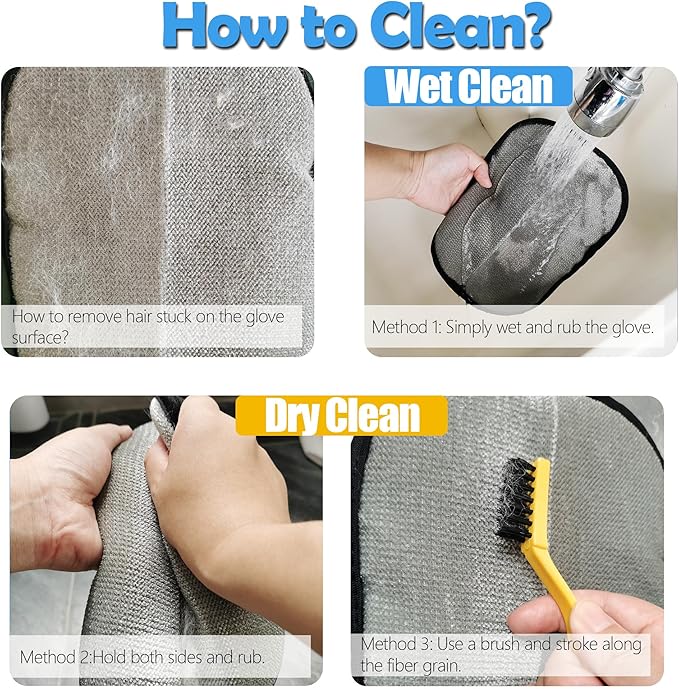 - 【Washable & Reusable】Simply wet the pet hair removal glove and knead the surface to release trapped fur instantly. Reusable for endless eco-friendly cleanups — saves cost, beats disposable rollers!
