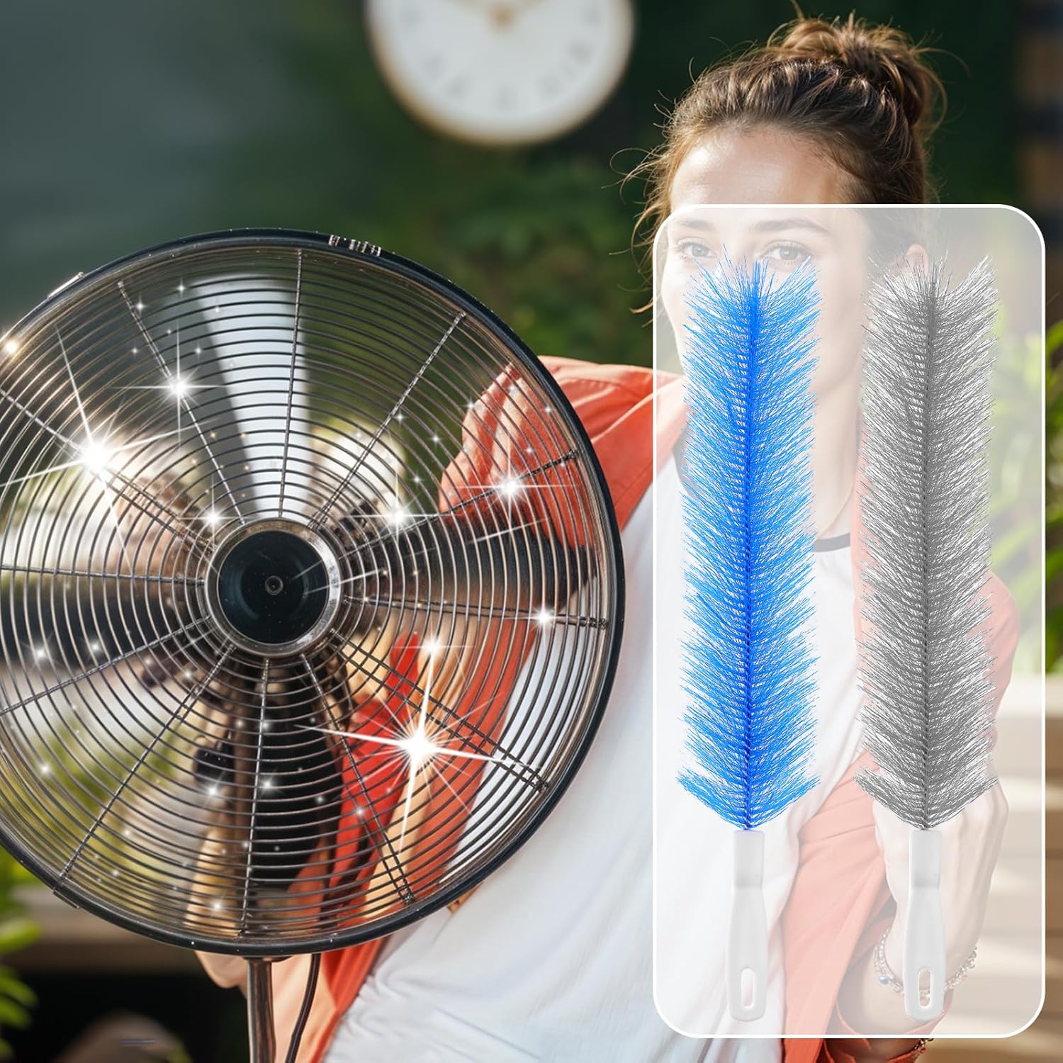 - 【Fan Cleaner Set】This set includes 2 bendable fan dusters with microfiber heads to meet your replacement needs. Switching between brushes for different areas is easy, making it simple to remove dust and dirt from ceiling fans, floor vent fans, air conditioning vents, curtains, and more. It is also suitable for cleaning stand fans, box fans, shutters, and other household items.