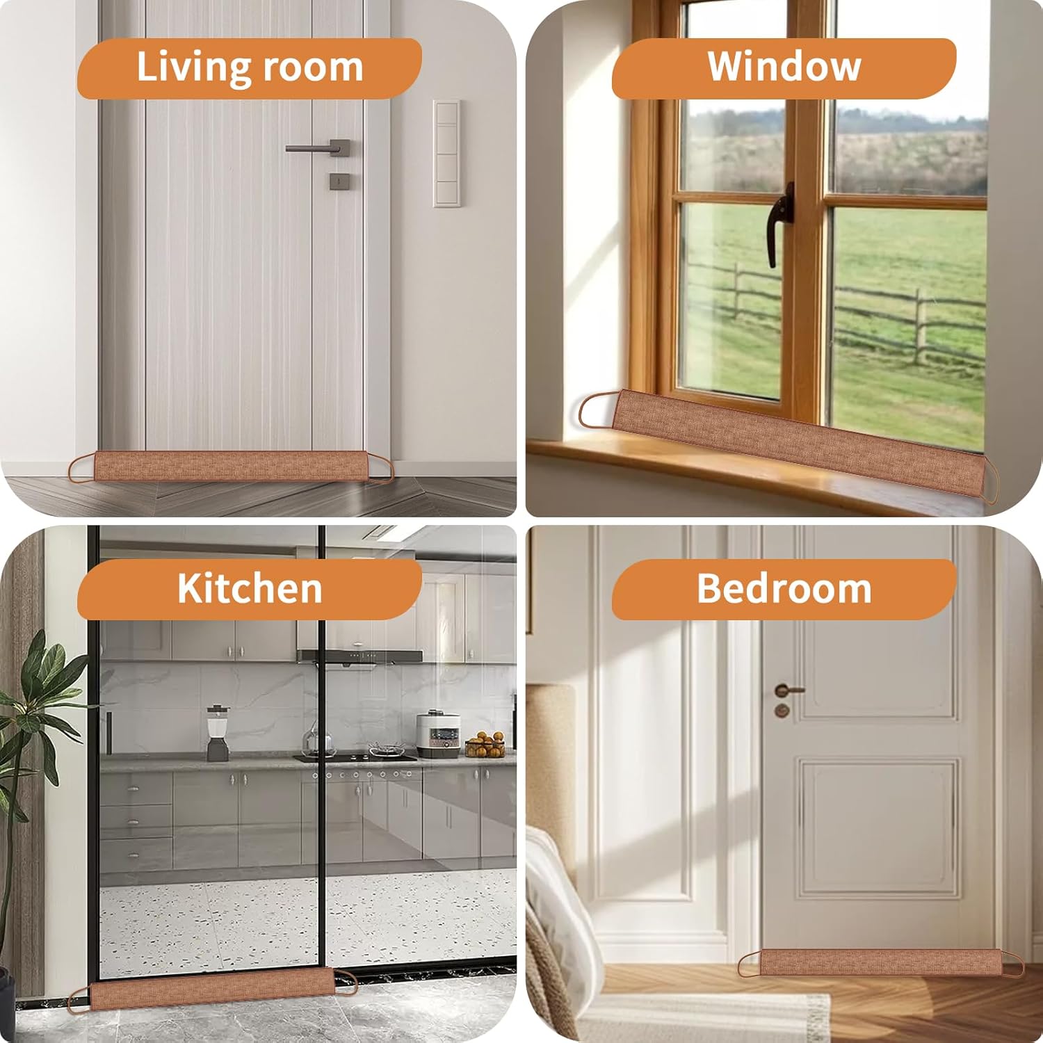 - 【Premium Material】The door draft stoppers for bottom of door are made of high-quality cotton cloth and are filled with polyester wadding and especially added glass beads to add its weight, weighs up to (2.2 lb) and ensure the draft stopper is not easily moved away from your door. This draft stopper helps prevent exterior drafts making it more efficient to heat and cool your home.