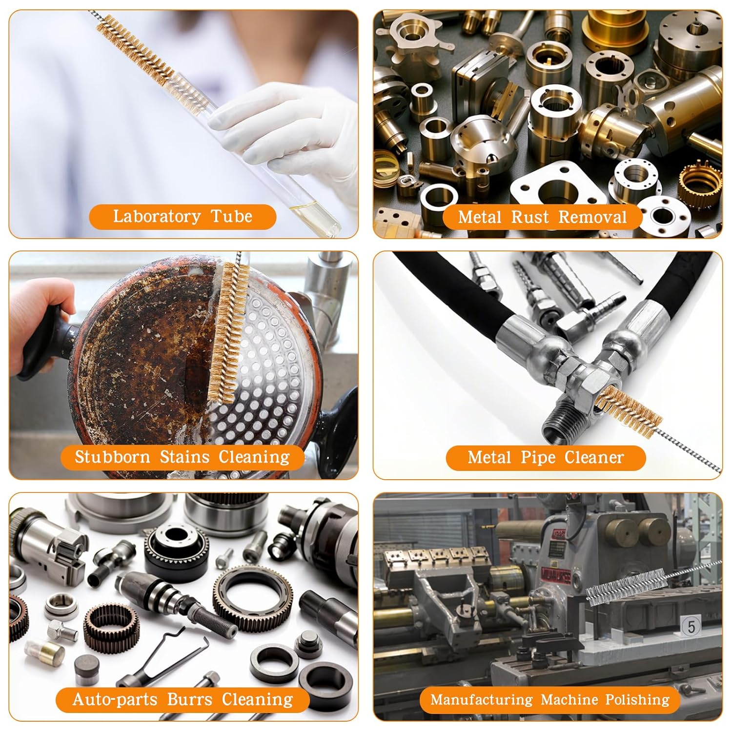 - [Safety and Tips] This metal pipe cleaner is for steel, stainless and other metal surfaces that be available for labware and stubborn stain cleaning. Keep these tools away from children and wear safety goggles to ensure safety. The mini wire brush will be covered with lubricating oil to maintain the stability of the wire in the production process, the product will have a slight odor and traces of lubricating oil after receiving, you can use paint thinner to wash away
