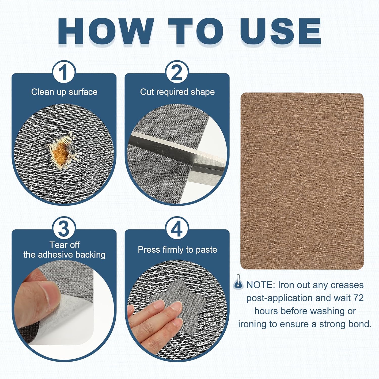 - Advantage: Our fabric repair patch tape is crafted from durable linen fabric, featuring an easy peel-and-stick design with a soft touch. Fabric patches are resistant to pilling and shrinking, machine washable for multiple uses while retaining its adhesive qualities.
