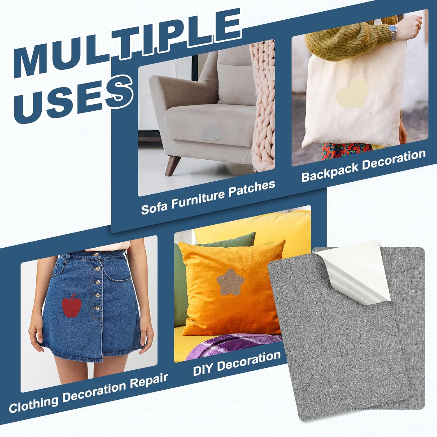 - Color: Grey; Material: Linen; Size: 280 x 205mm / 11 x 8 inch(L*W); Packing List: 2 x Fabric Patches Self Adhesive