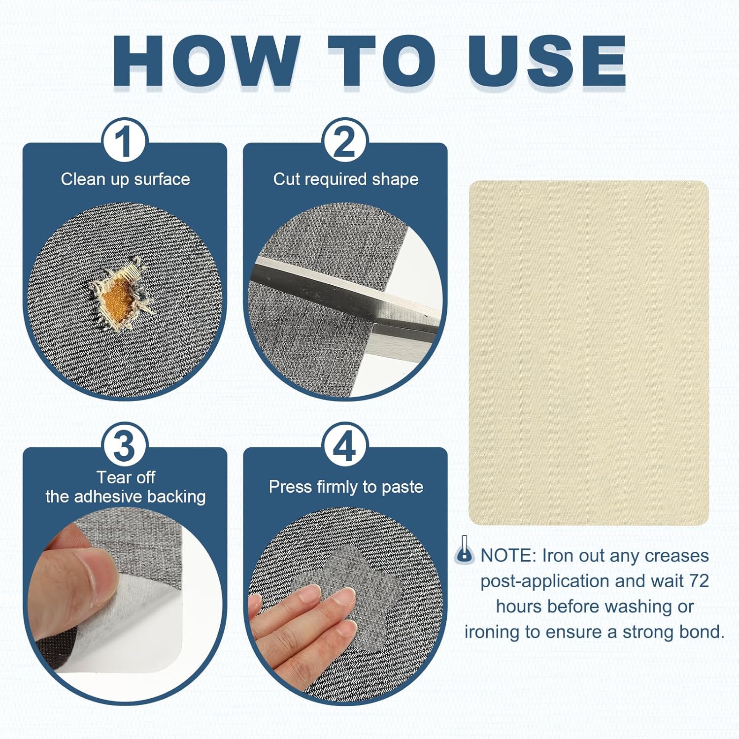 - Advantage: Our fabric repair patch tape is crafted from durable linen fabric, featuring an easy peel-and-stick design with a soft touch. Fabric patches are resistant to pilling and shrinking, machine washable for multiple uses while retaining its adhesive qualities.