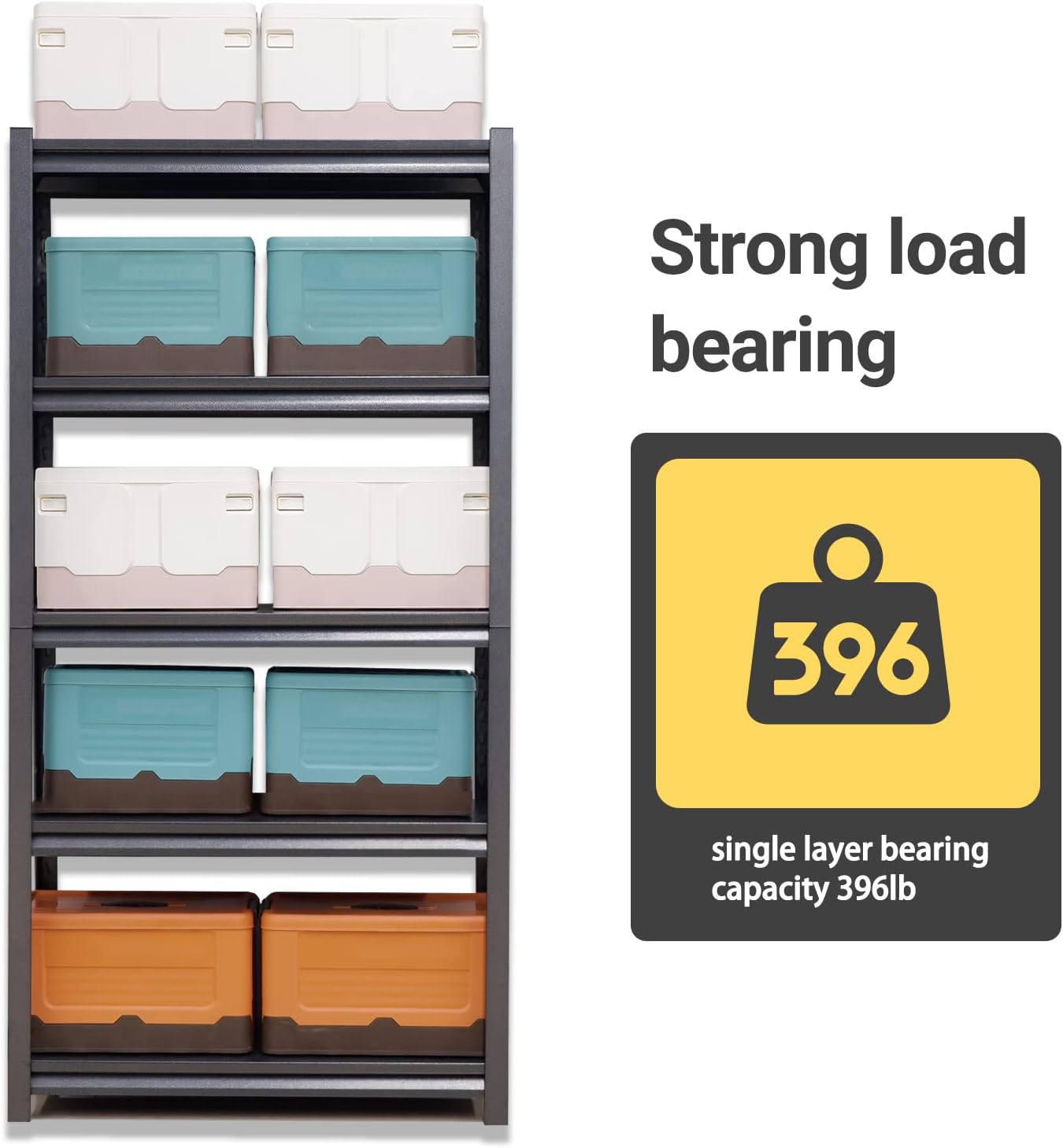 - 【Industrial-Strength Load Capacity】The garage shelf constructed with heavy-duty double-layer cold-rolled steel and reinforced design, each shelf boasts an impressive load capacity of 396lbs. Supports heavy toolboxes, car parts, storage bins, or office supplies with unwavering stability – no wobble, just reliable strength.