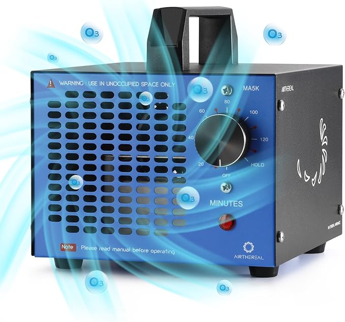 Airthereal MA5K Ozone Generator for Home, Ozone Air Ionizer Odor Eliminator with 120-Min Timer, Lightweight Design, Odor Removal for Car, Smoke, Pets, Basements, Covers Up to 2,000 Sq. Ft., Blue