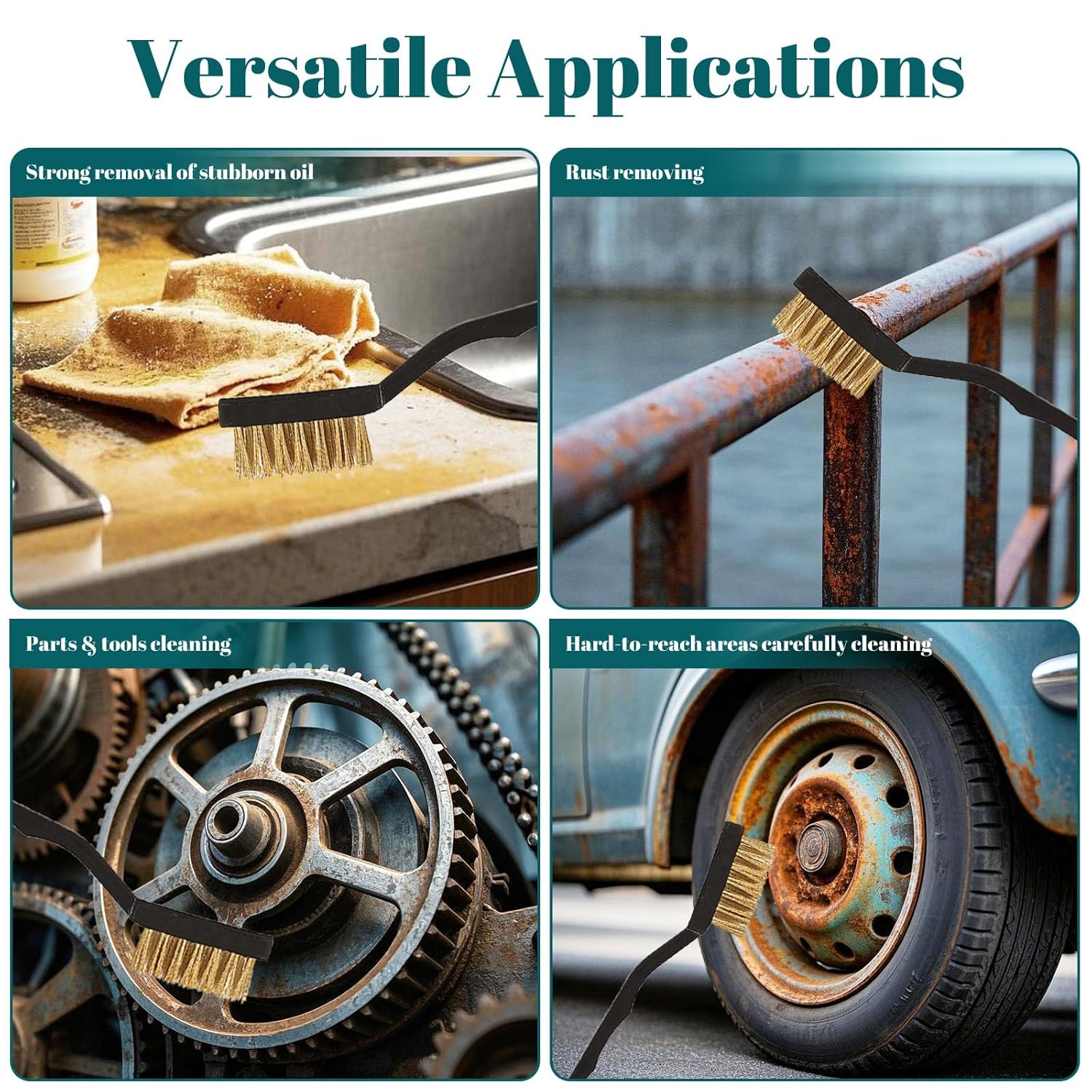 - 【Wide range of applications】: Brass brush set is suitable for cleaning and descaling in different industries, such as steel, machinery, metal parts, welding slag, cleaning kitchens, door frames, sliding doors, floor tiles gaps, without damaging the surface or fine features.