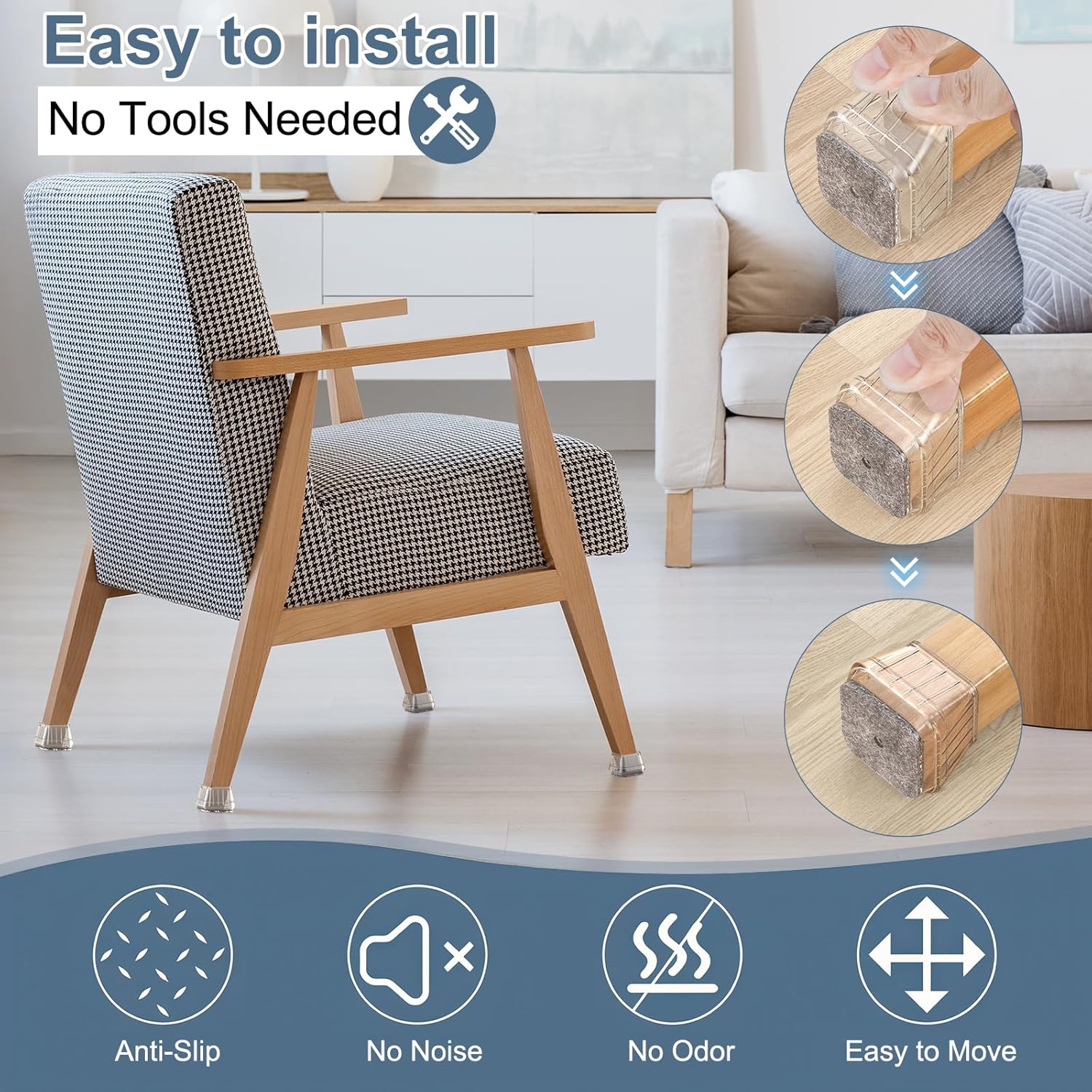 - ✅【Easy to Install】The non slip furniture slider is easy to install, without the use of tools. Just slip the chair feet protectors over your chair legs, and they’ll fit snuggly to stay in place! Much better than the felt or ones which have to be nailed on!