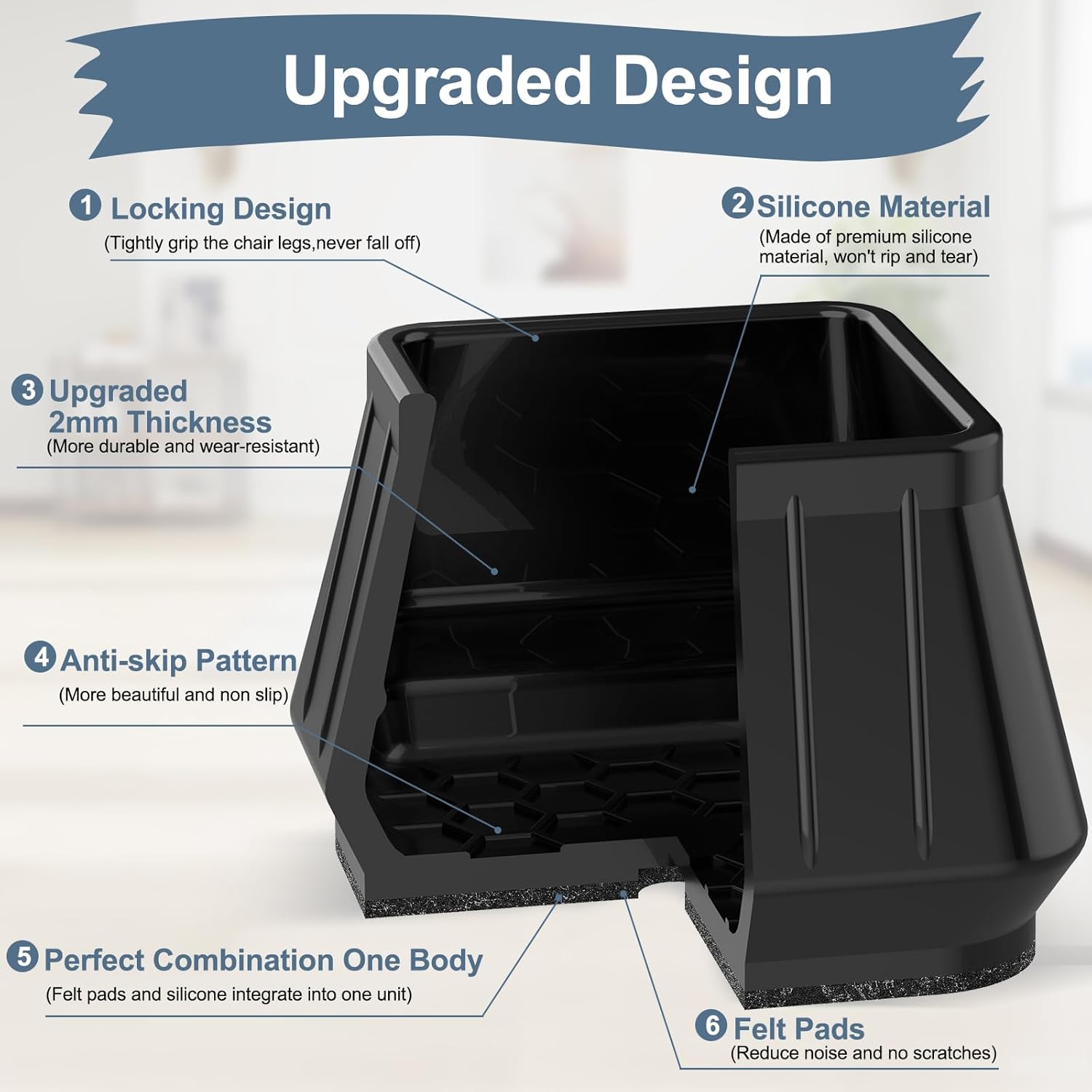 - ✅【Comprehensive Improvement】The chair leg floor protectors use special technology to combine the felt and silicone into one inseparable piece, which prevent the felt pad from falling off during use. We chose the premium quality silicone material which bonds the felt pad better, and won't tear easily when stretched.
