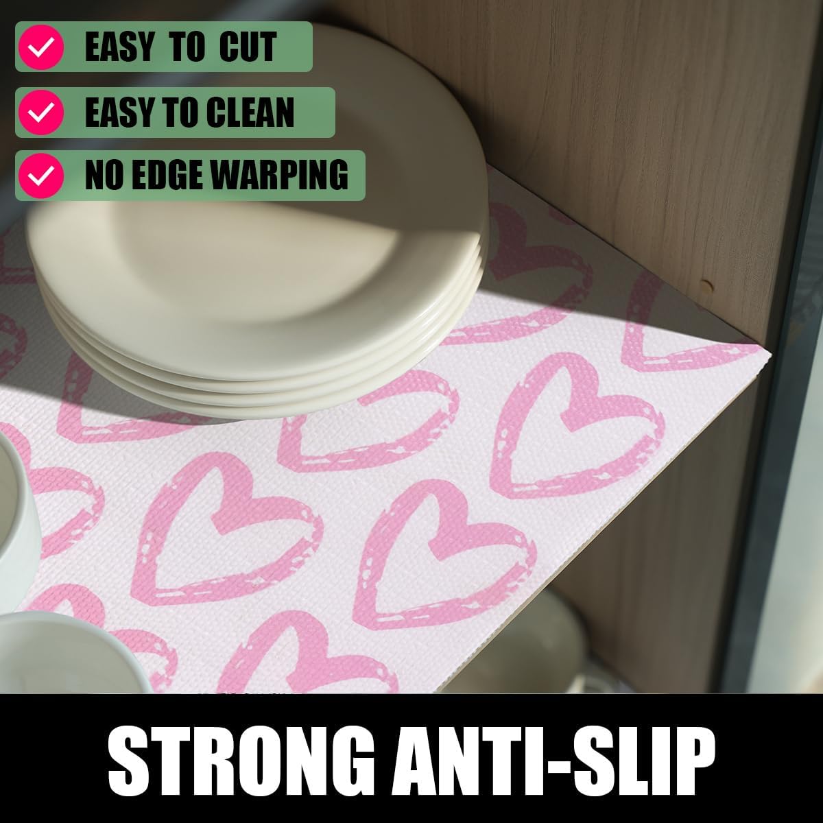Heart Drawer Liner for Cabinets 16IN x 10FT,Shelf Liner Non-Adhesive and Strong Non-Slip Cabinet Drawer Liners for Kitchen,Table,Bookshelves,Waterproof Cupboard Liners,Pink