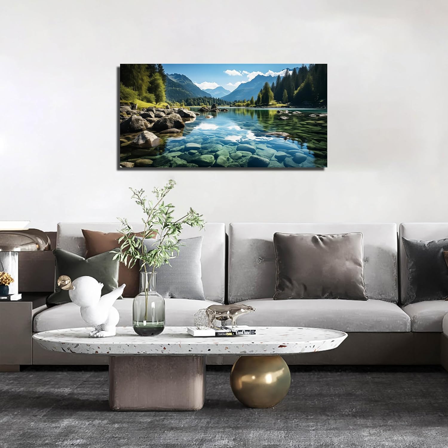 GUGIKA Landscape Wall Art for Living Room, Mountain and Lake Wall-Decor for Bedroom, Natural Scenery Canvas Prints Pictures for Hallway Office, Size 40 x 20 Inches