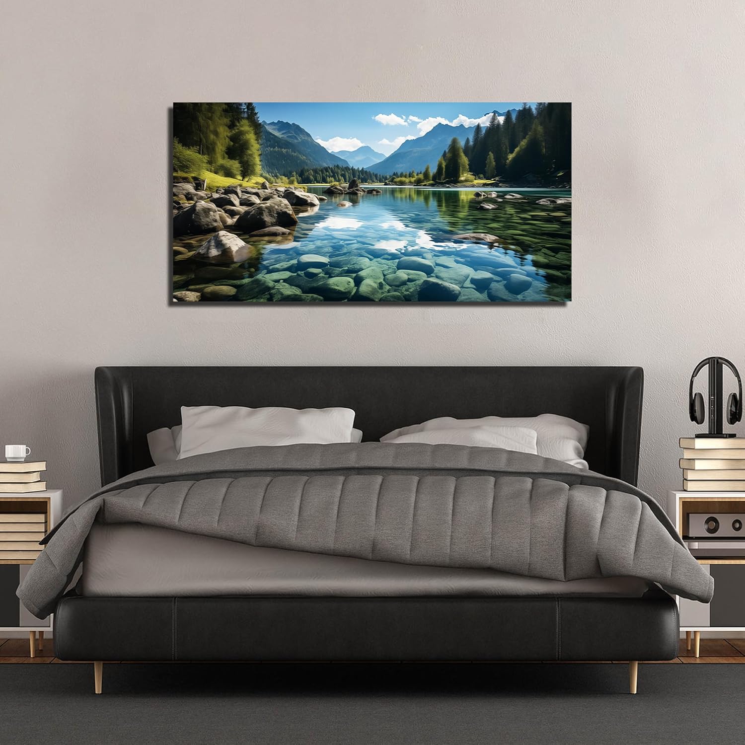 GUGIKA Landscape Wall Art for Living Room, Mountain and Lake Wall-Decor for Bedroom, Natural Scenery Canvas Prints Pictures for Hallway Office, Size 48 x 24 Inches