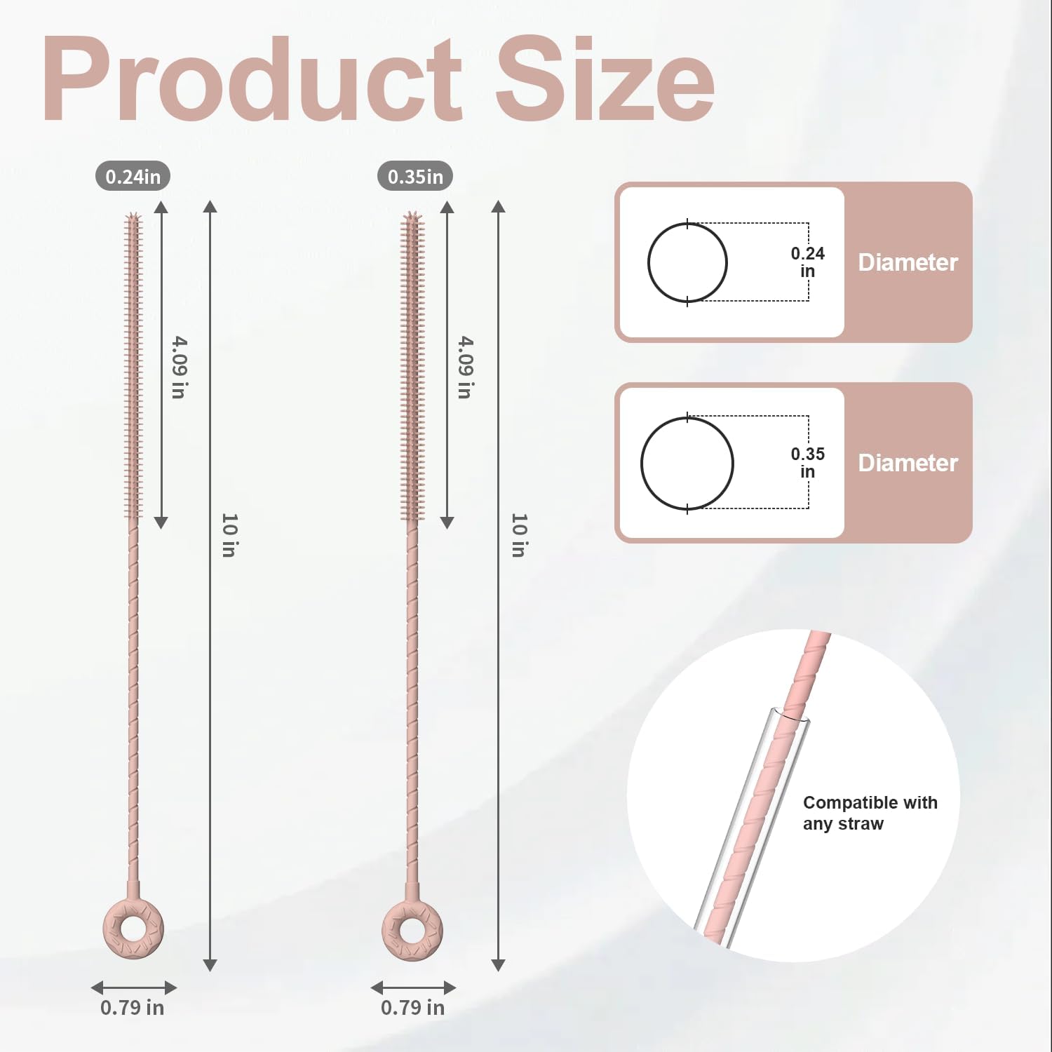 - Multi-Scenario Application: This silicone straw cleaner brush set features 0.24" (6 mm) and 0.35" (9 mm) diameters, 10" (254 mm) long, designed to perfectly clean both narrow reusable straws and wider straws, reaching deep inside to remove residue and grime.