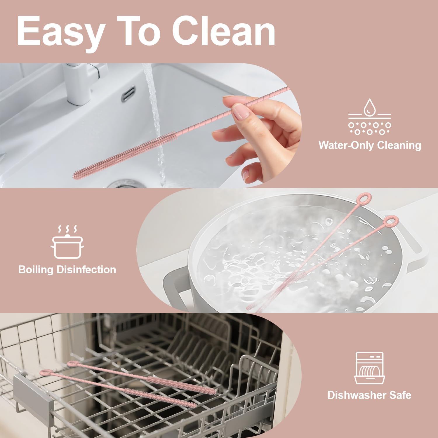 - Safe & Durable Silicone Bristles: Made from high-quality, food-grade silicone, BPA Free, our straw brush are gentle on straws (won't scratch) yet tough on buildup. The flexible Handle bend to scour every curve and corner for a thorough clean, and won't shed or break like bristle brushes.