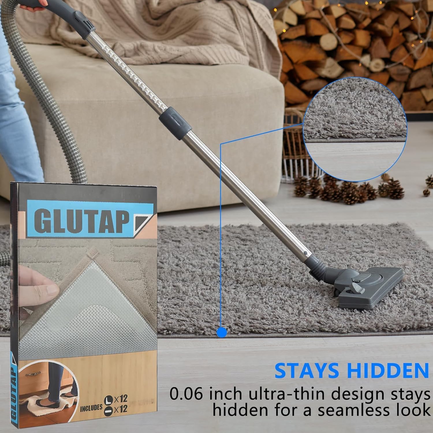24 PCS Carpet Tape,Carpet Edge Anti - Curling Fixer, Non-Slip Carpet Pad Suitable for Tiles and Hardwood Floors (24PCS L Shape)