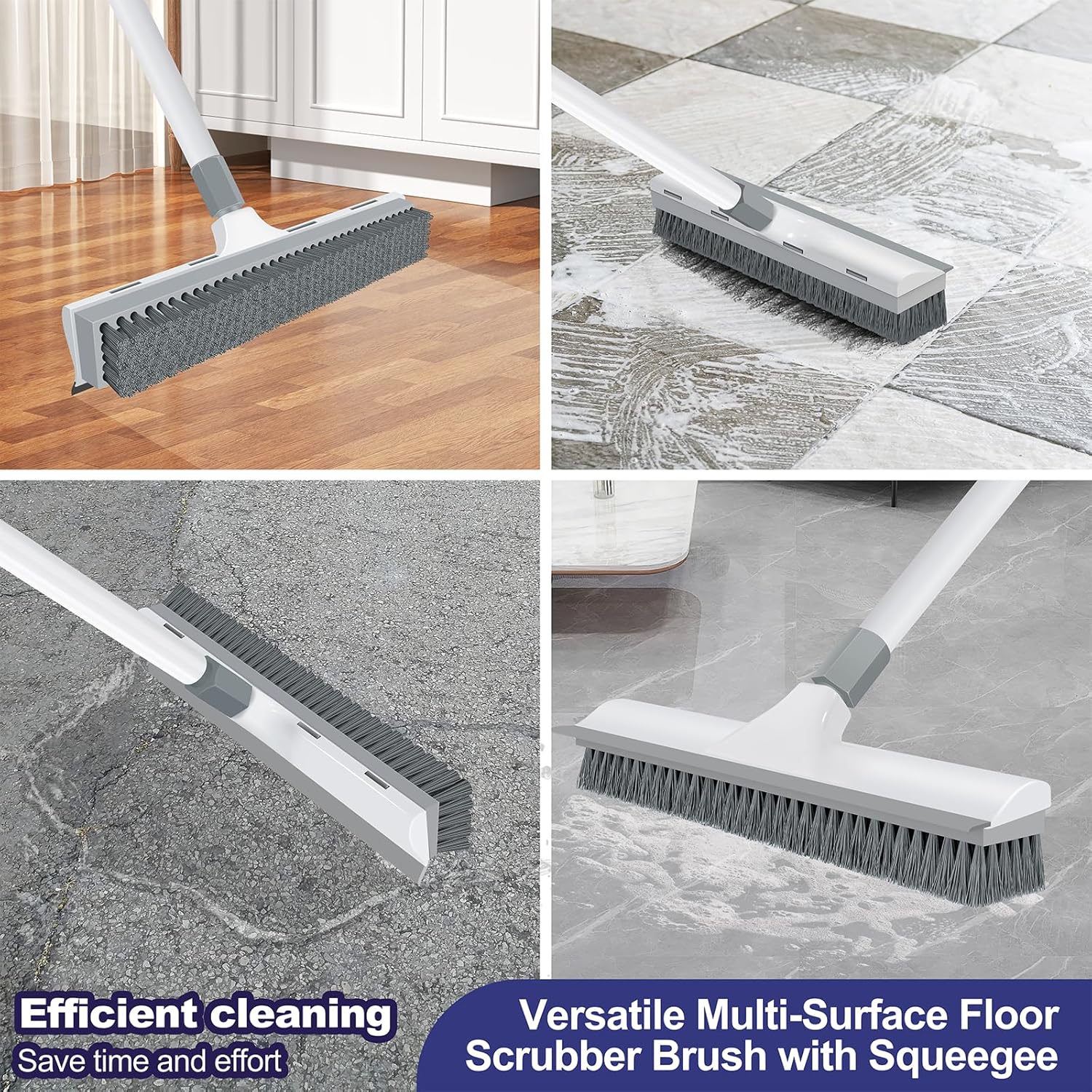 - 2-in-1 Floor Scrub Brush: Effortlessly scrub away stubborn stains with hard-bristles brush, then wipe away dirty water, debris and residue with the built-in rubber squeegee, achieving a deeper clean and rapid drying