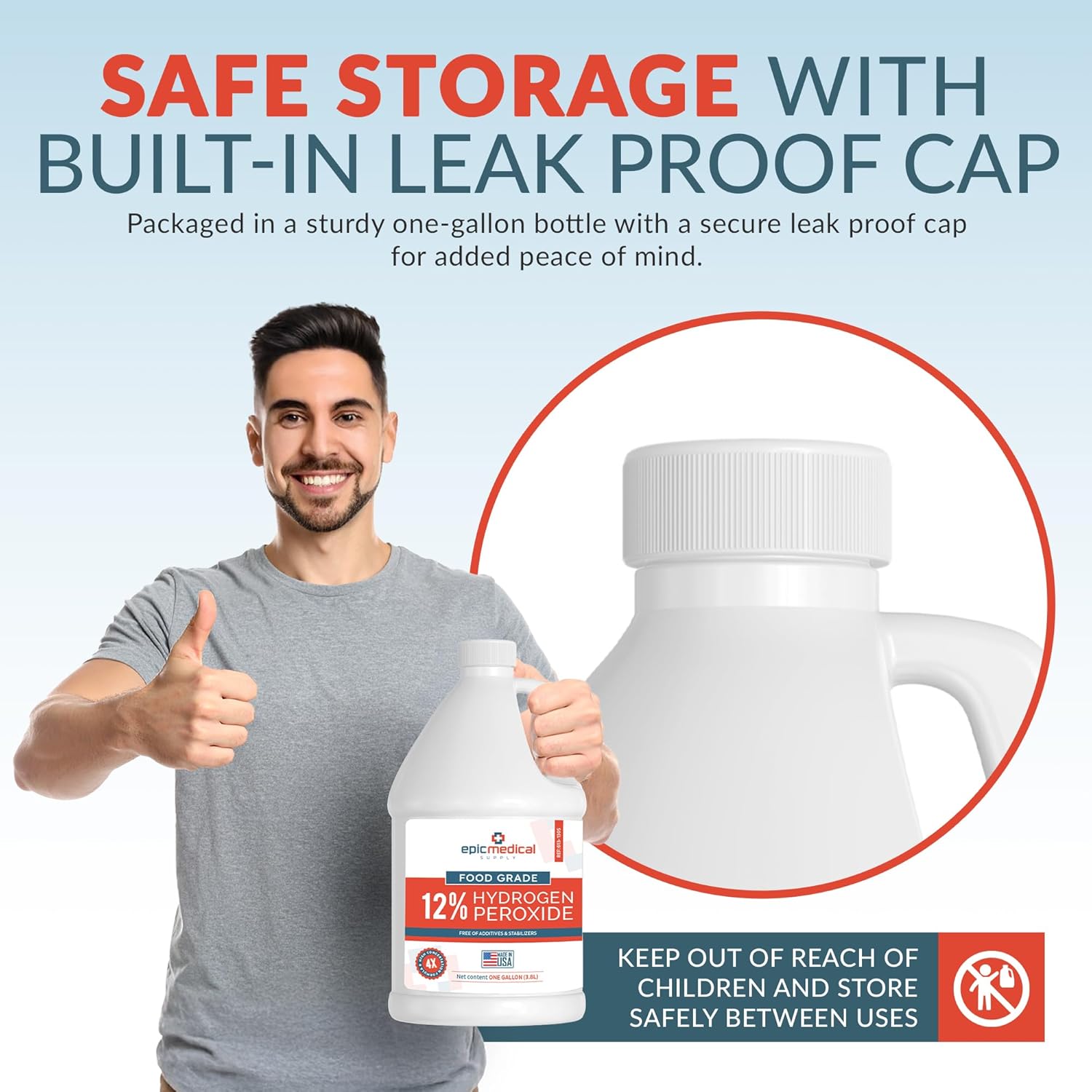 - SAFE STORAGE WITH BUILT-IN SAFETY CAP – packaged in a sturdy one-gallon bottle with a secure safety cap for added peace of mind. Always follow dilution and usage instructions carefully—this strong oxidizing agent may be corrosive to eyes. Keep out of reach of children and store safely between uses