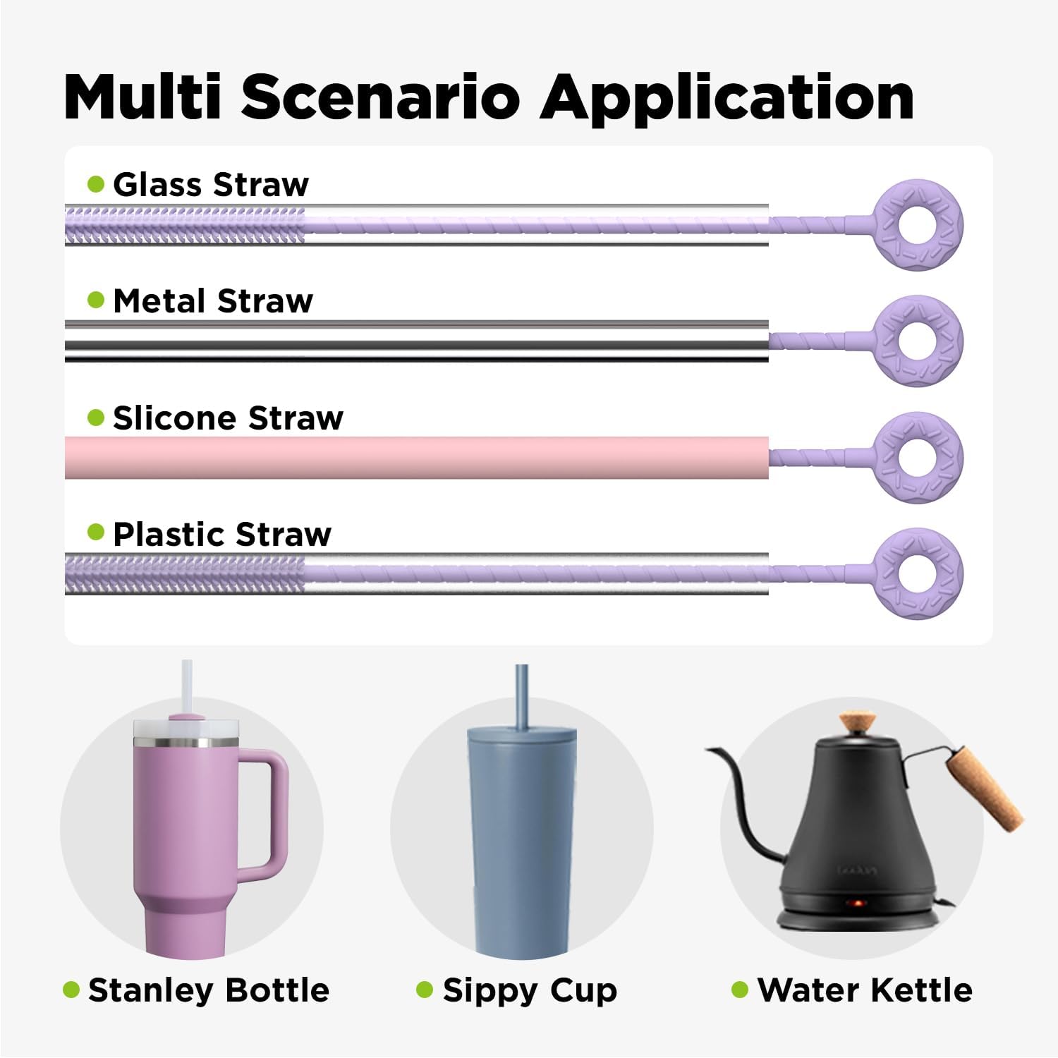 - Safe Food-Grade Silicone: Made of premium silicone that withstands high temperatures up to 356°F. Safe for boiling water and steam cleaning. Soft, fine bristles won’t scratch the straw’s inner wall but easily remove stubborn stains.