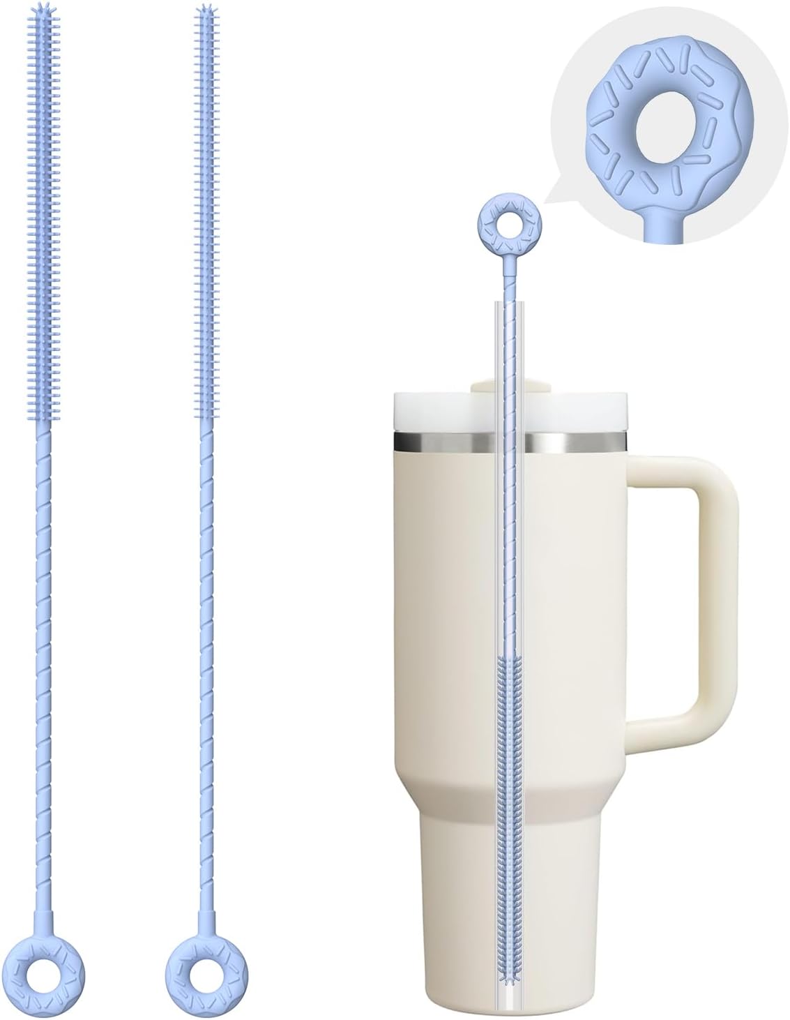 2 Pcs Silicone Straw Cleaner Brush, Extra Long Cleaning Brushes for Straws, 6mm&9mm, Blue
