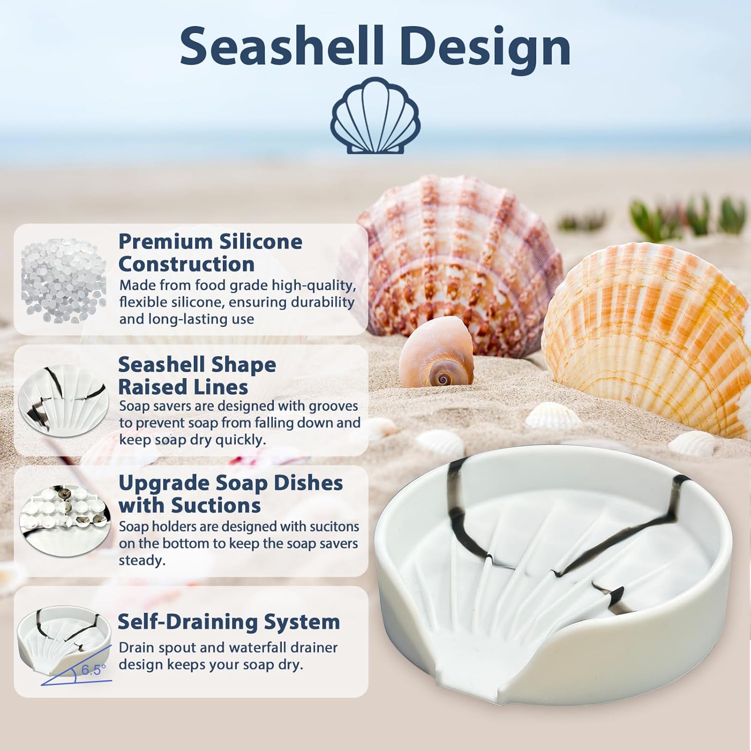 - Non-Slip Bottom: The soap dish have 13 small suction cups on the bottom to keep it firmly attached on the countertop. Prevent your soap and other items from slipping or sliding around, keeping them securely in place.