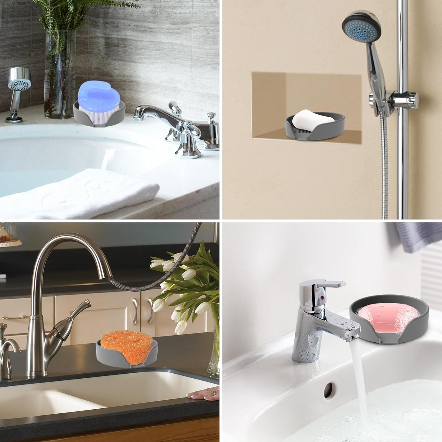 - Self Draining Soap Dish: The silicone shower soap dish is designed with an raised surface and a drain spout. It can automatically drain water into the sink, prevents soap from getting mushy and water from pooling on the countertop, keeping both clean