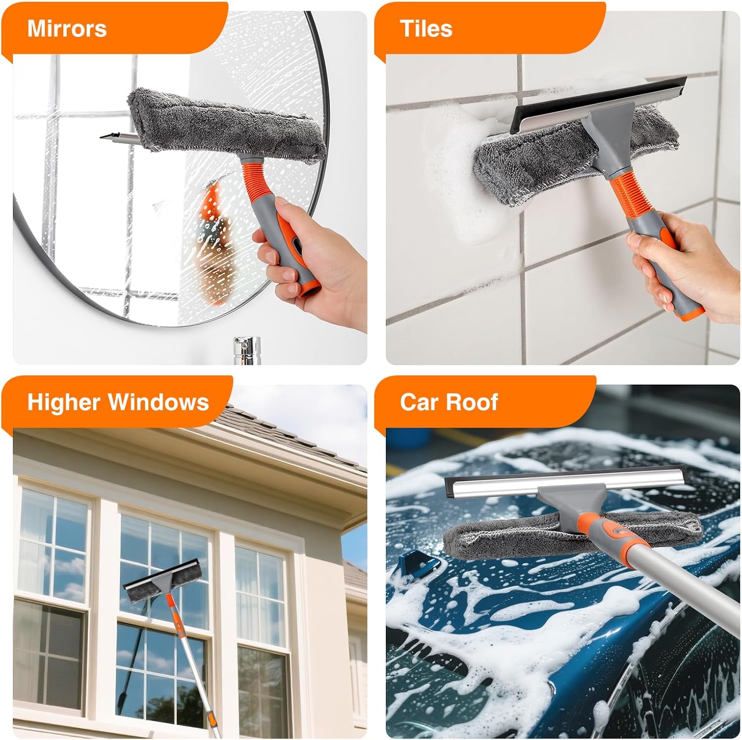 - 4️⃣ **Rotatable Head Technology** Adapts to curved surfaces (car windshields) and tight corners. Extends to clean 62‘’ second-story windows without ladders.