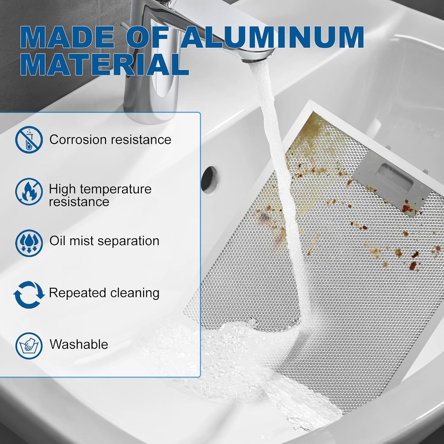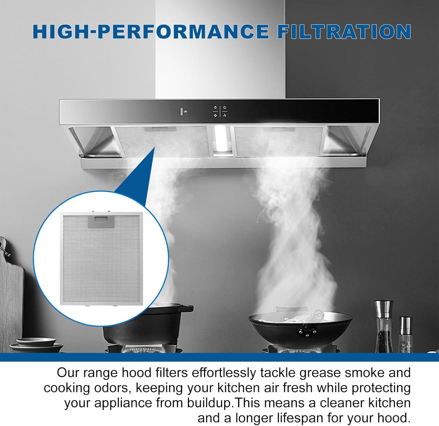 - ENHANCED FILTRATION: Our range hood filters feature an advanced 5-layer aluminum mesh design that effectively captures grease and cooking residue. Stove vent filter is expertly constructed and enhanced to be thicker than the industry standard enabling our hood filters for kitchen to stop more grease from entering.