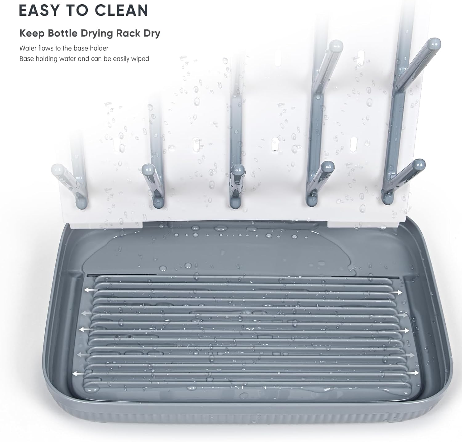 - LARGE CAPACITY: Holds up to 15 baby bottles, and doesn't take up counter space. The baby bottle drying rack can hold all baby bottles and feeding accessories. Top can dry nipples, pacifiers, pump parts, and others.
