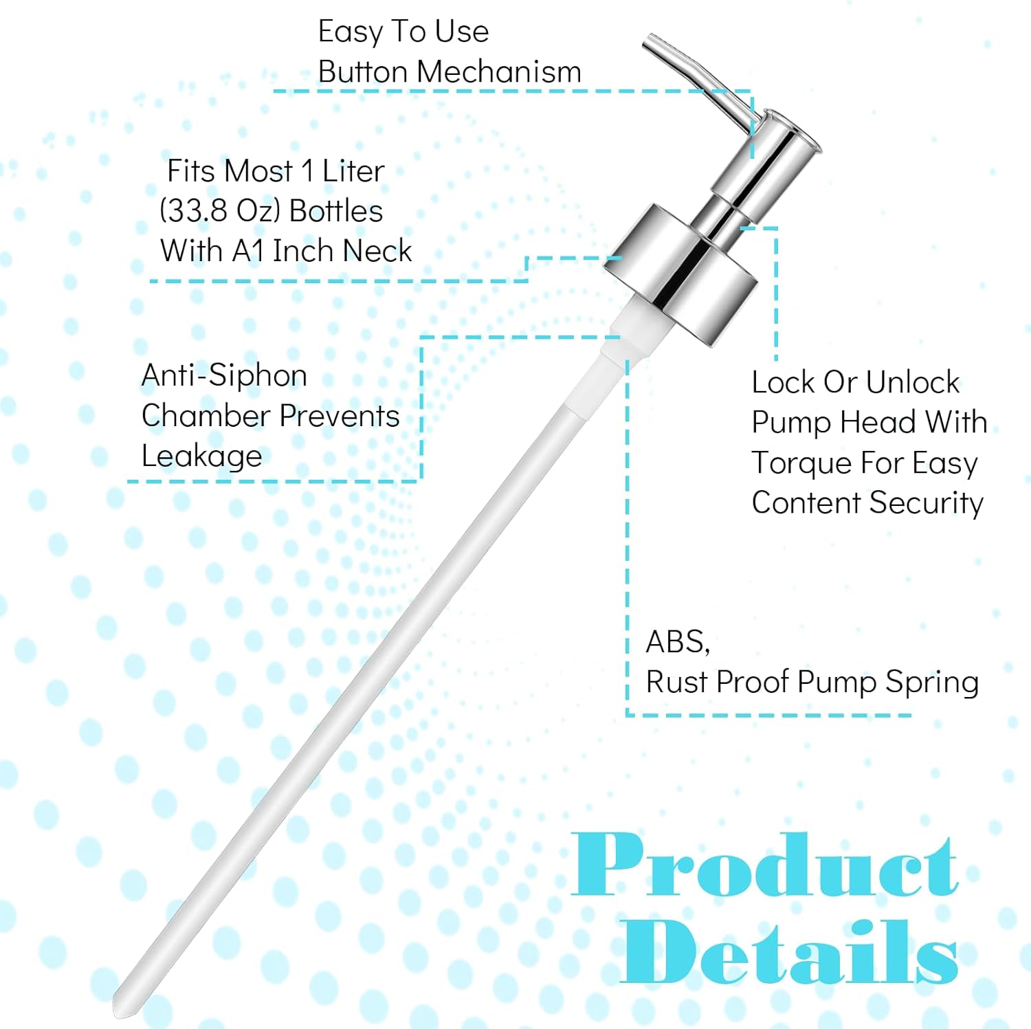 - [Smooth Pumping] This soap dispenser pump features a robust internal spring for smooth and efficient liquid delivery. The silver design complements various bottle colors, enhancing its professional appearance and visual appeal, ensuring an optimal user experience.