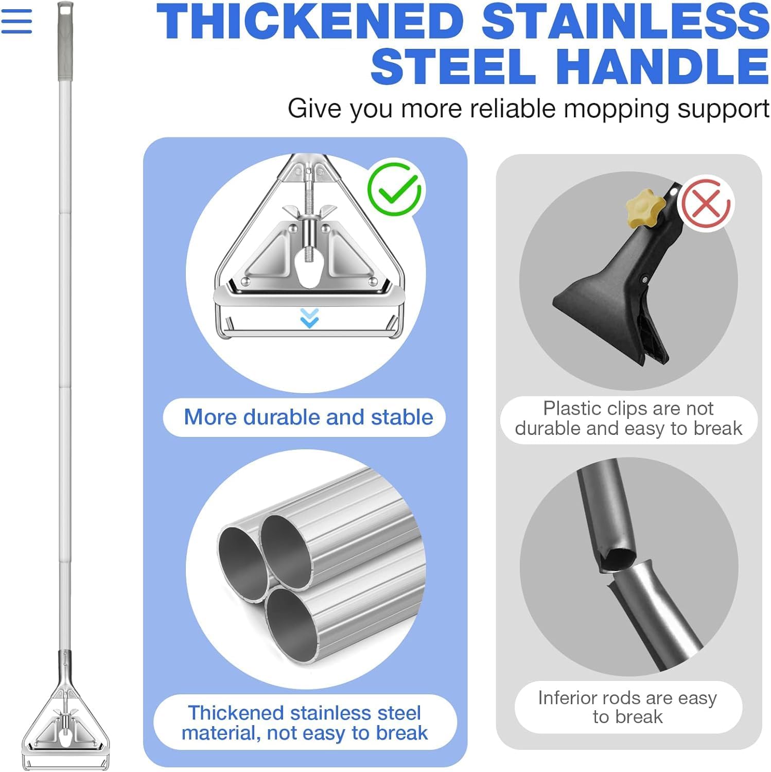 - 【Premium mop handle 】Commercial mop stick replacement is made of thick stainless steel, which is more stable. Don't worry about the handle being bent or broken due to pressure during use.