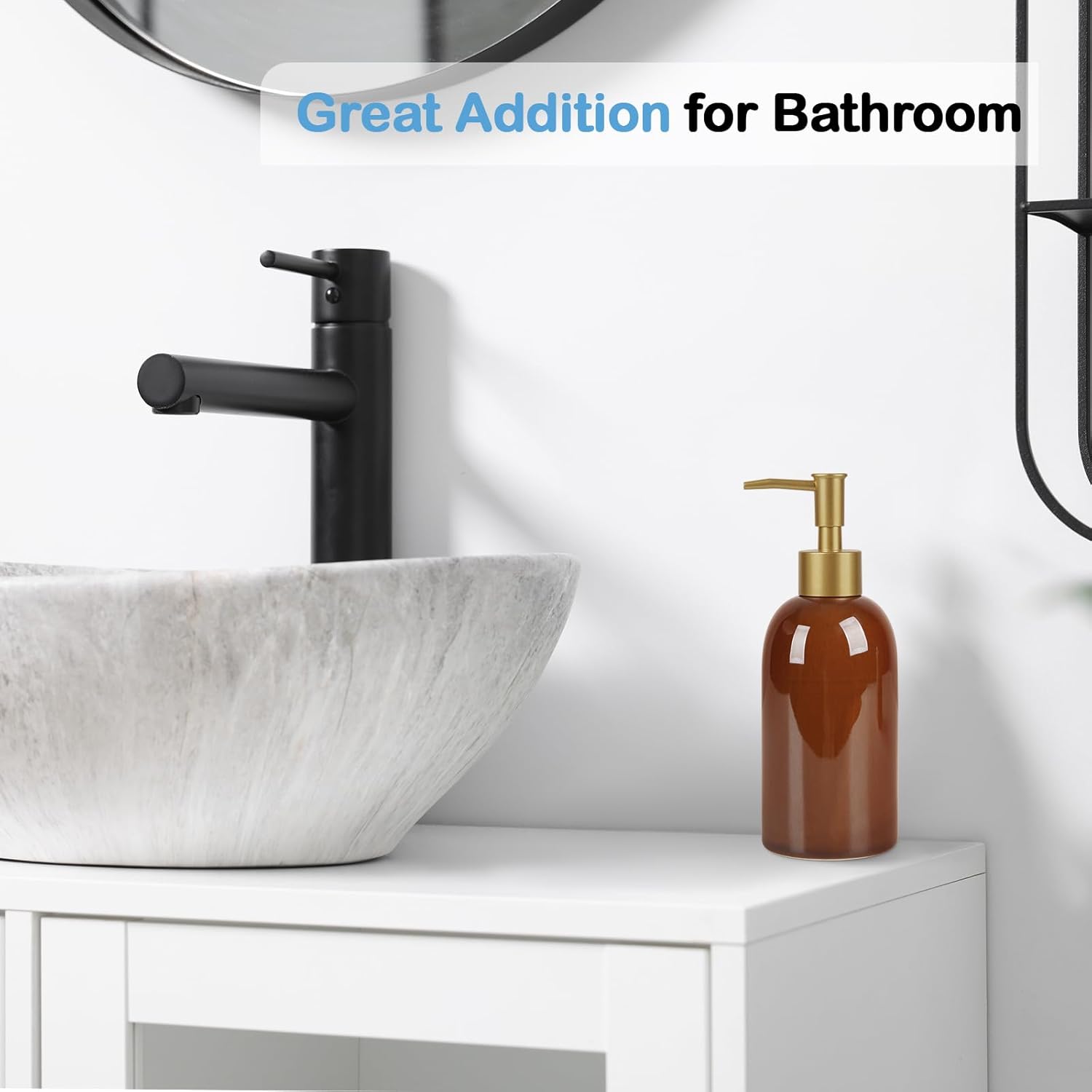 Natheeph 14OZ Ceramic Soap Dispenser Ceramic Soap Pump Dispenser Can Fill Liquid for Bathroom/Kitchen (Brown)