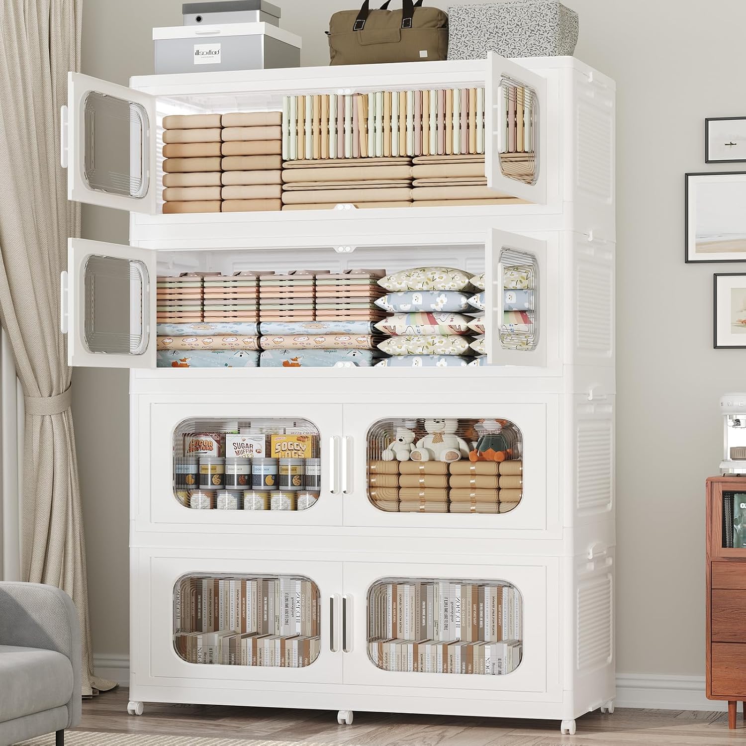 - 【Two Ways to Open & Magnetic Easy Access】The collapsible storage bins with doors and wheels feature a dual access way, allowing for both top and front door openings, and with clear brown windows for easy visibility. The extra large storage bins with open front doors are equipped with magnetic lock buckles to prevent dust from entering the cabinet.