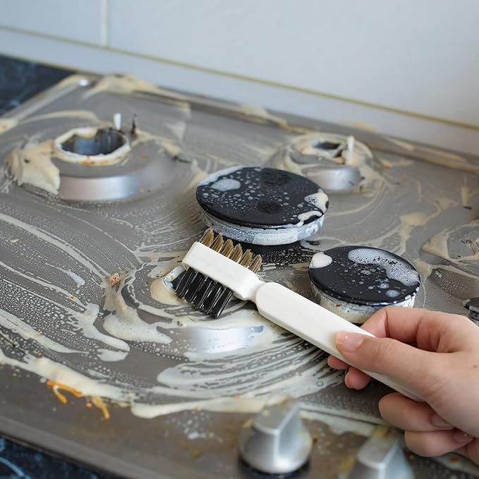 - 【Durable Brass Wire Bristles】The brass wire bristles provide excellent scrubbing strength for this stove top cleaner, effectively removing stubborn rust, oil stains and burnt food marks while being gentle on surfaces compared to steel brushes.