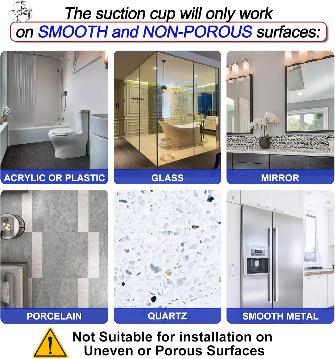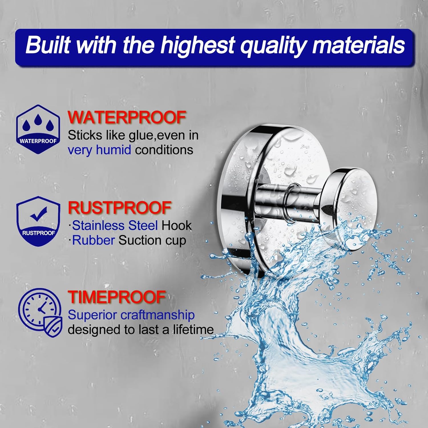 - [VacuumLock Pro Seal Technology]: Suction hooks utilize advanced vacuum suction technology and feature a super-sticky silicone base for strong, reliable support. Twist the hook rod clockwise to expel air and maximize suction. Each hook can hold up to 15 lbs