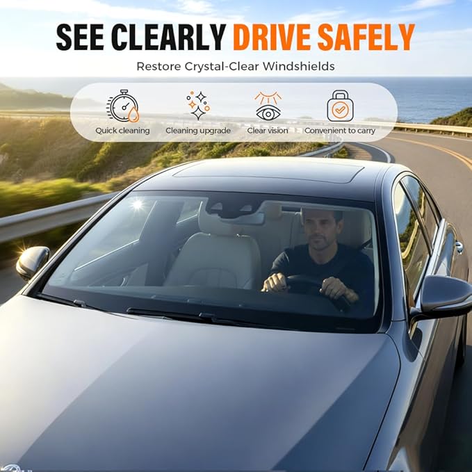 - Restores windshield transparency, reduces glare, and improves driving visibility in rainy or foggy weather. High-quality materials ensure long-lasting performance, making it a reliable tool for maintaining pristine glass surfaces
