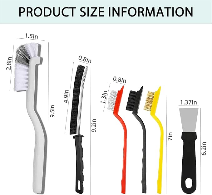 - VERSATILE CLEANING: This 6-piece set includes hard bristle crevice cleaning brushes, toilet brushes, and scrub brushes suitable for cleaning tight spaces and hard to reach areas in bathroom, kitchen, and appliances.cleaning brush