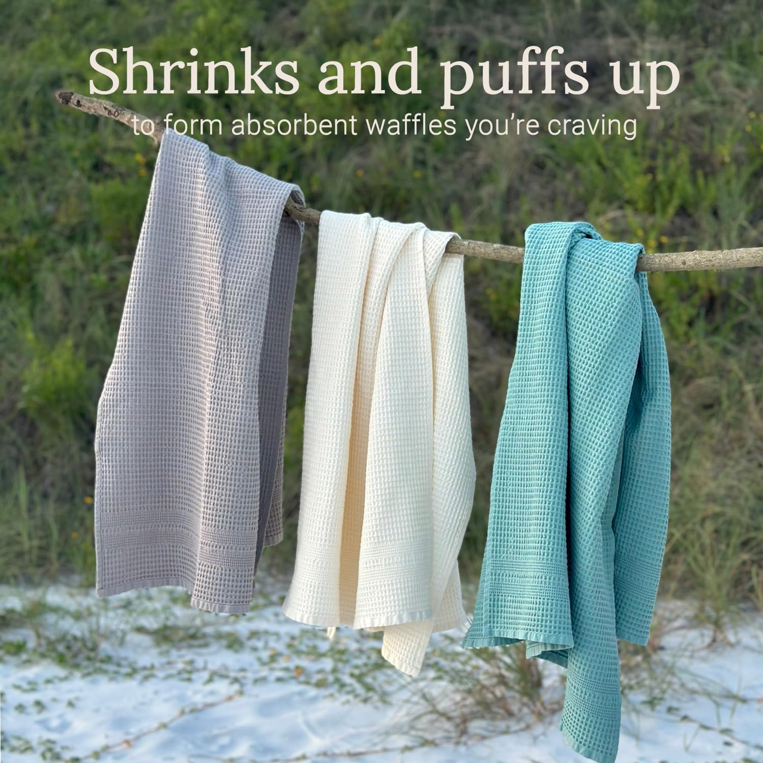 - Lightweight Waffle Bath Towels: Completely wraps around your body and stays tucked in. Naturally thin bath towels take up less space in your closet, laundry machine, beach towel bag, pool towels bag, suitcase, boat, camper, RV or yacht.