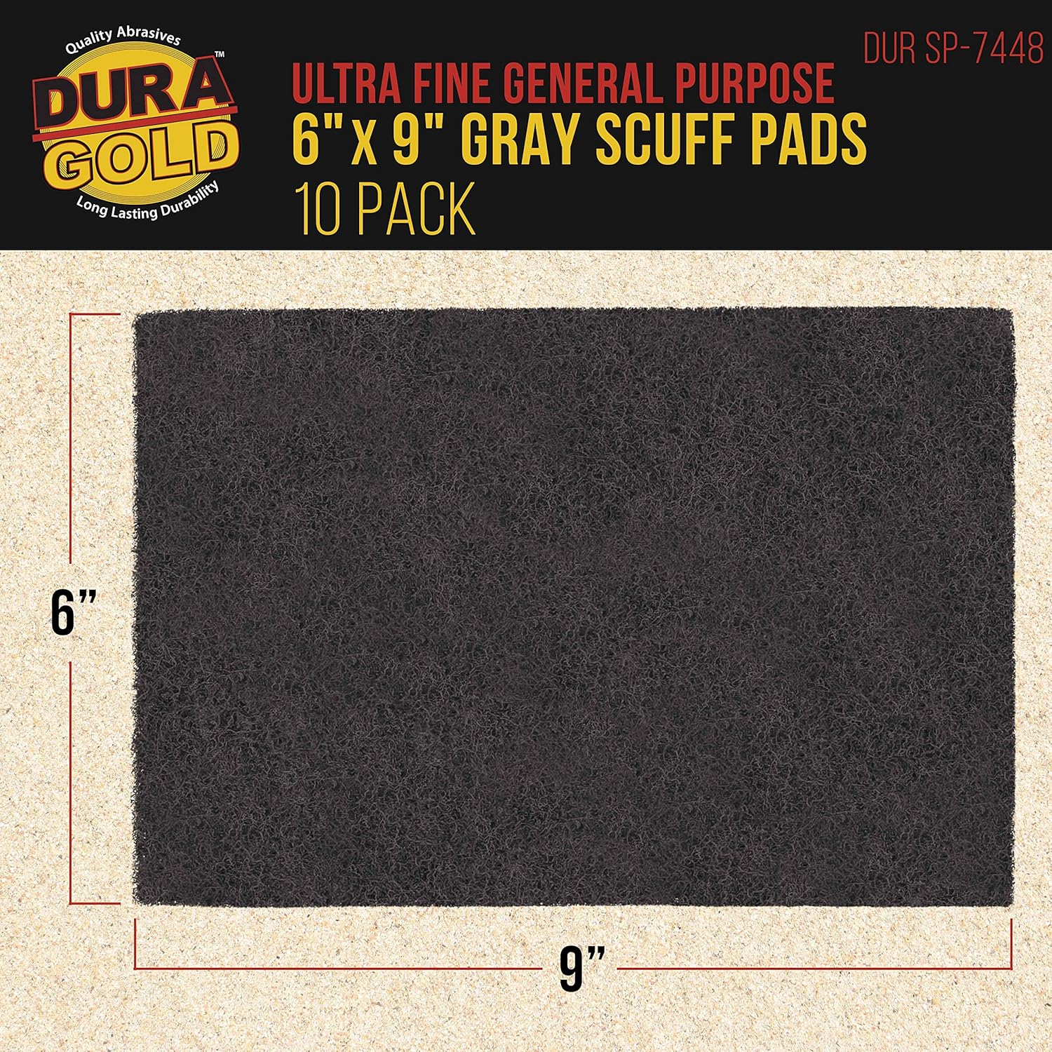 - Box of 10 Dura-Gold Premium 6" x 9" Premium Ultra Fine General Purpose Gray Scuffing Pads. High-performance gray ultra-fine scuffing pads that deliver a very fine aluminum oxide abrasive cut comparable to about a P800 grit sandpaper cut.