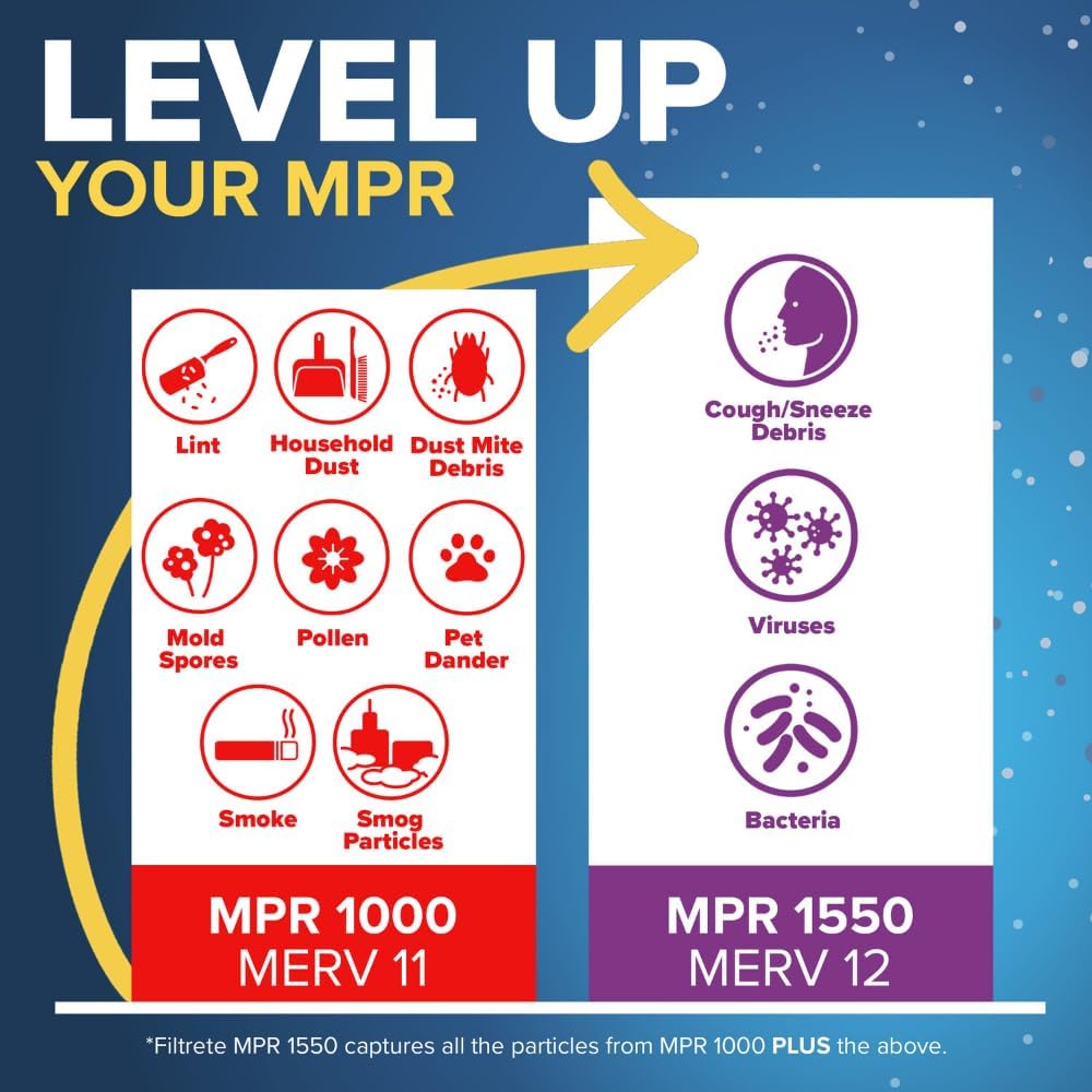 - MAKE YOUR HOME YOUR SANCTUARY: 4-pack of 3-month pleated Filtrete 18x18x1 MERV 11 MPR 1000 AC Furnace Air Filter helps capture unwanted particles from your household air to contribute to a cleaner, fresher home environment