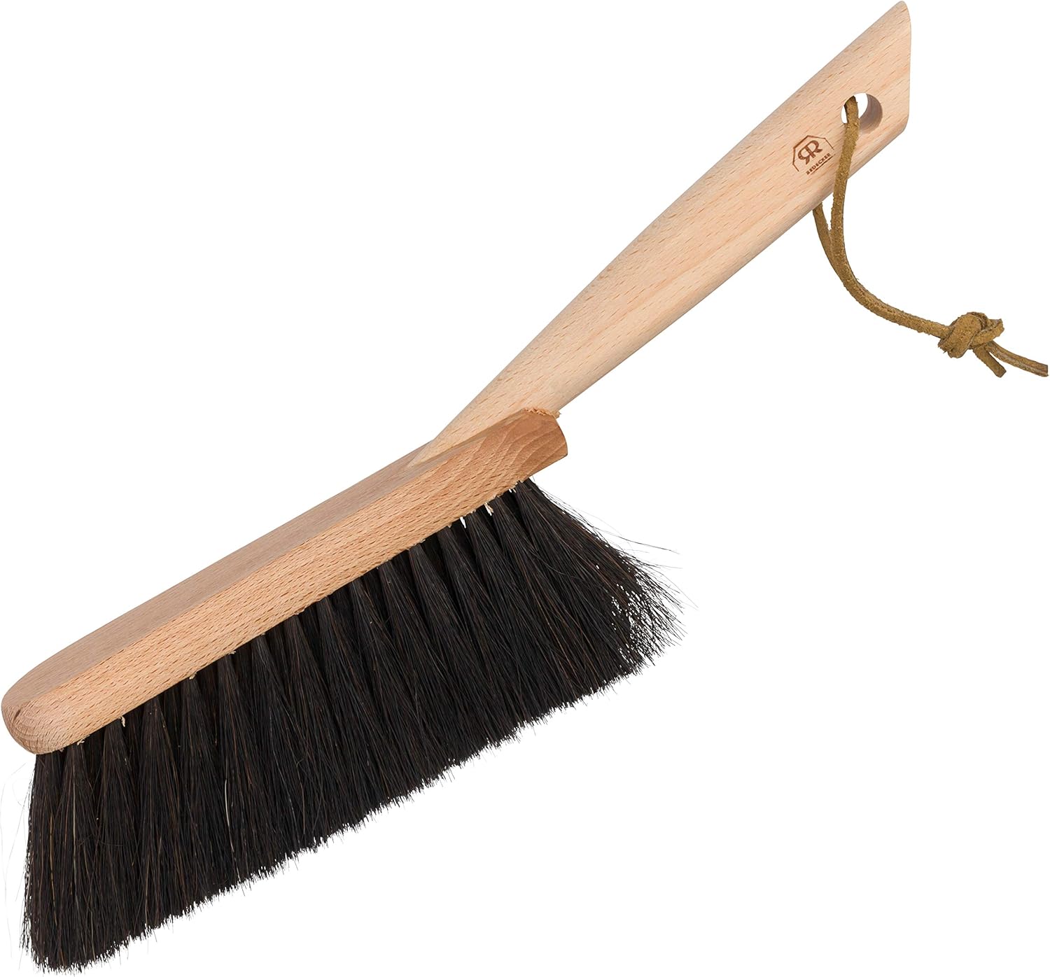 REDECKER Horsehair Fiber Hand Brush and Dust Pan Set, Heavy Duty Broom and Dustpan Combo for Home and Outdoor, Oiled Beechwood Handles, Stainless Steel Dust Pan, Made in Germany, 14-1/8-Inches