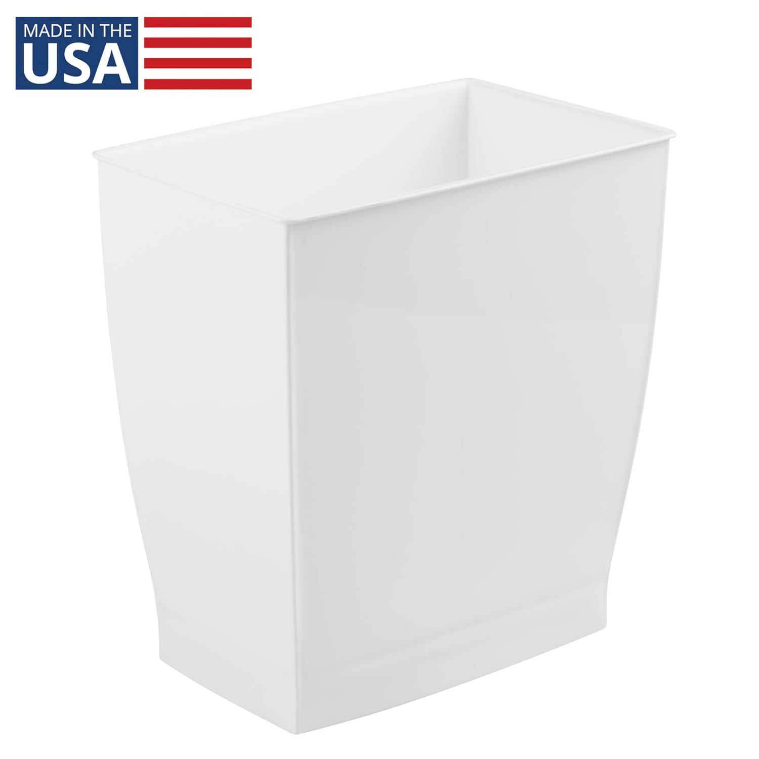 iDesign,Plastic Spa Rectangular Trash, Waste Basket Garbage Can for Bathroom, Bedroom, Home Office, Dorm, College, 2.5 Gallon, White