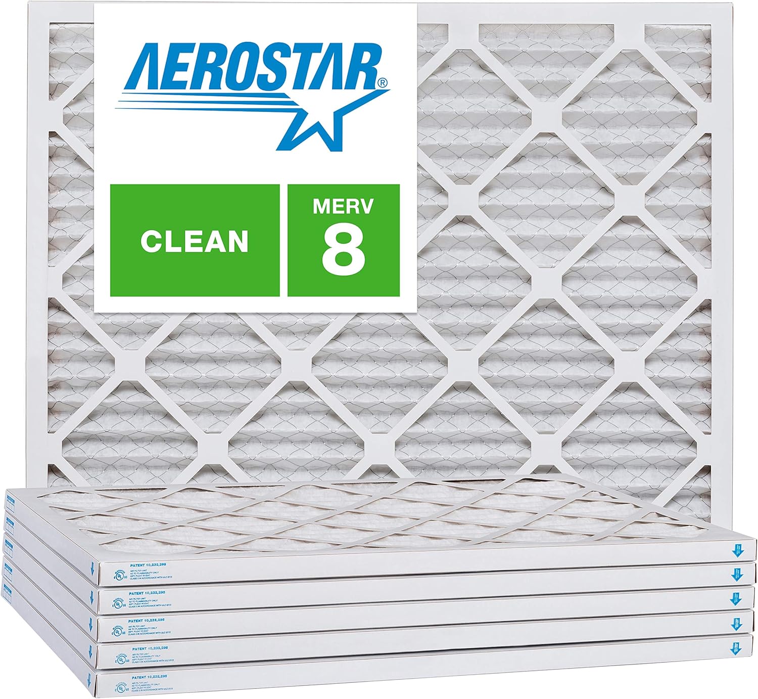 Aerostar 21 1/4x23 1/4x1 MERV 8 Pleated Air Filter, AC Furnace Air Filter, 6 Pack (Actual Size: 21 1/4" x 23 1/4" x 3/4")
