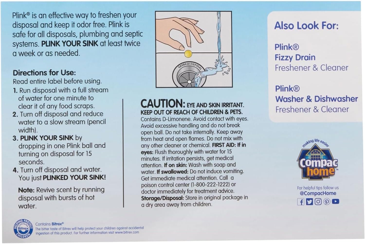 - Compac Home presents Plink : it cleans; deodorizes; and freshens your sink; drain and entire kitchen quickly and efficiently with fresh; aromatic lemon scent drain deodorizer