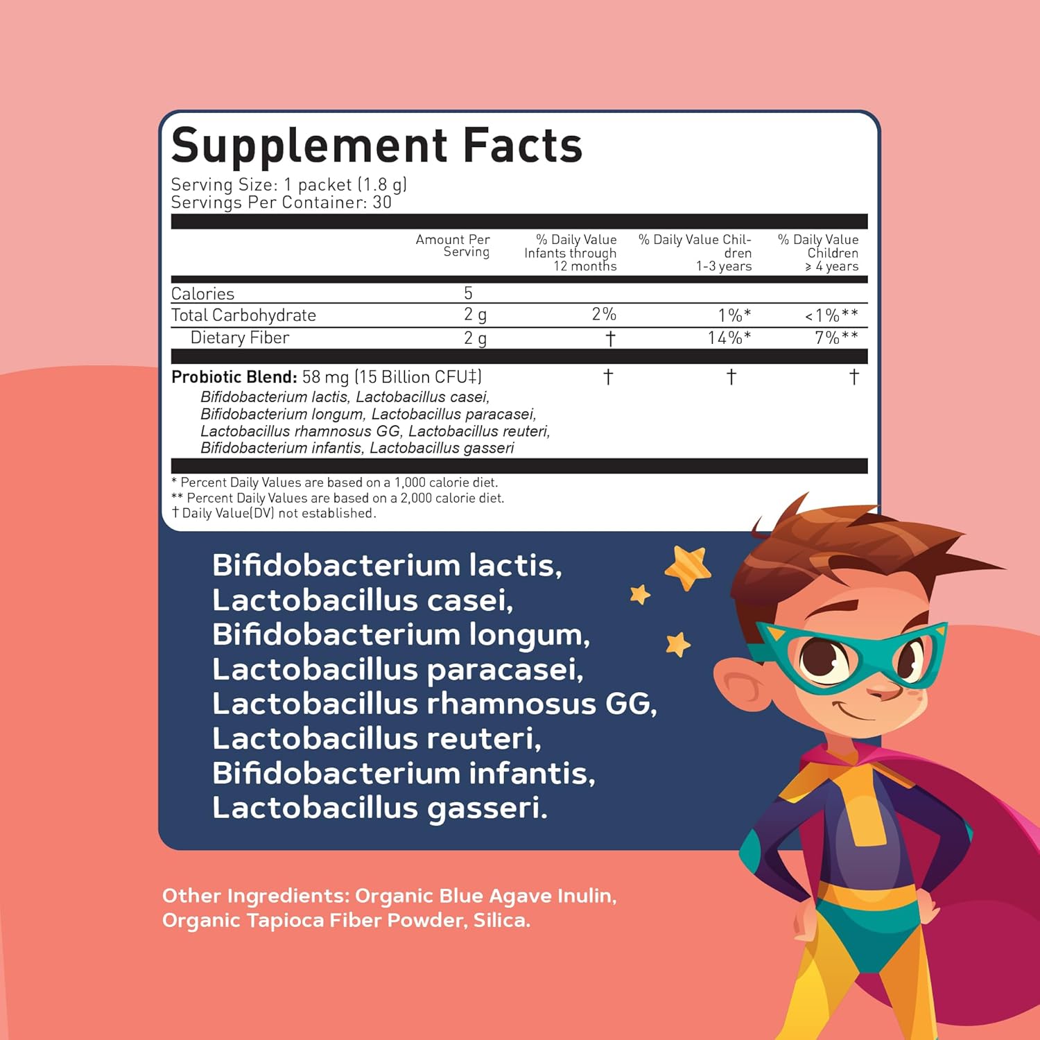 Lovebug Award Winning USDA Organic Probiotic for Toddlers & Kids | Multi-Strain 15 Billion CFU | Easy-to-Take Powder | Sugar Free | Ages 12 Months to 4 Years | 30 Count (Pack of 1)