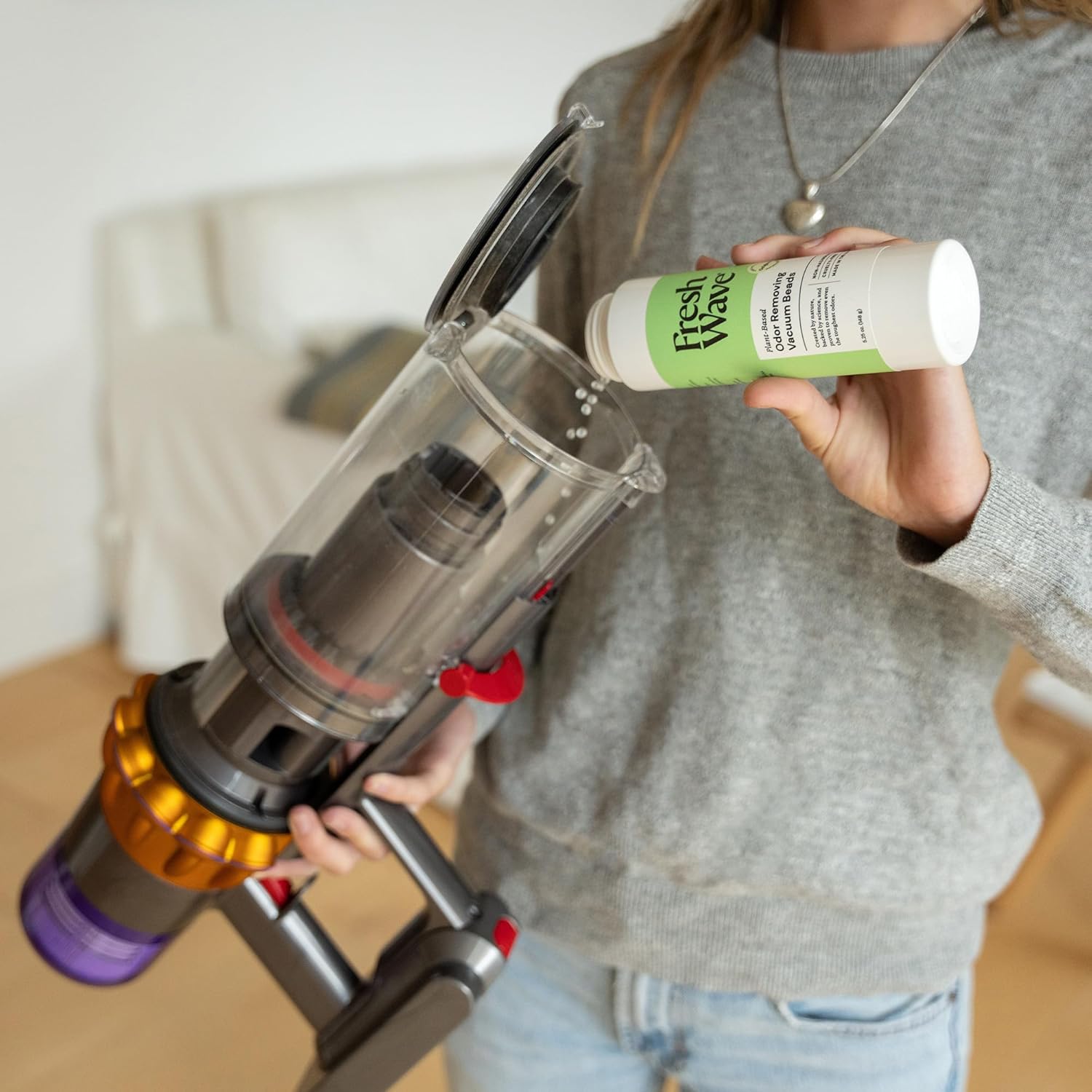 - VACUUM DEODORIZER: Fresh Wave Vacuum Beads remove vacuum odors with natural ingredients. Use in both central vacuums and traditional vacuums to get rid of ped odors in the house or in car interiors.