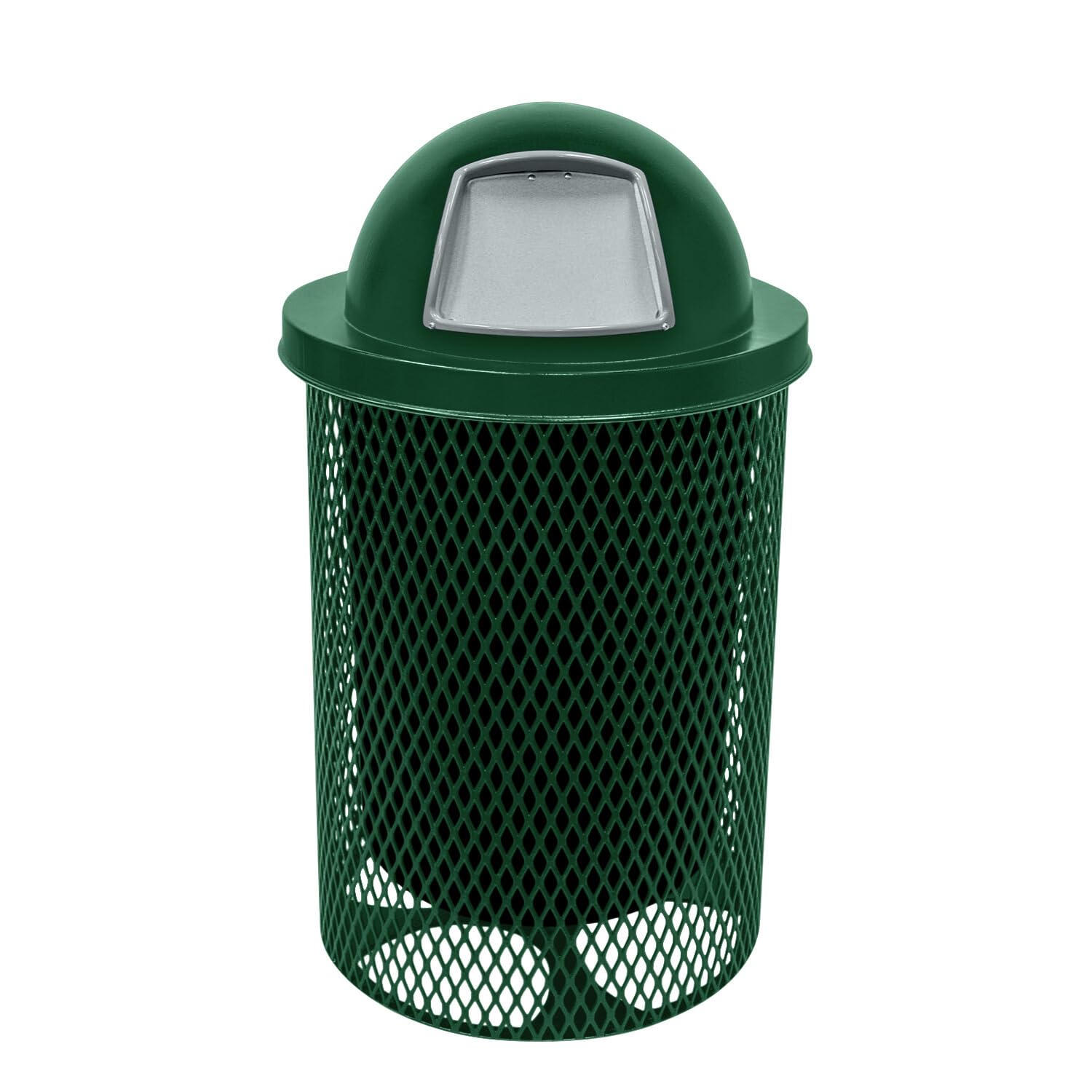 COATEDOUTDOORFURNITURE RDT-GRN Heavy Duty 32 Gallon Round Trash Receptacle, Liner Included, Green with Dome Lid, Made in America