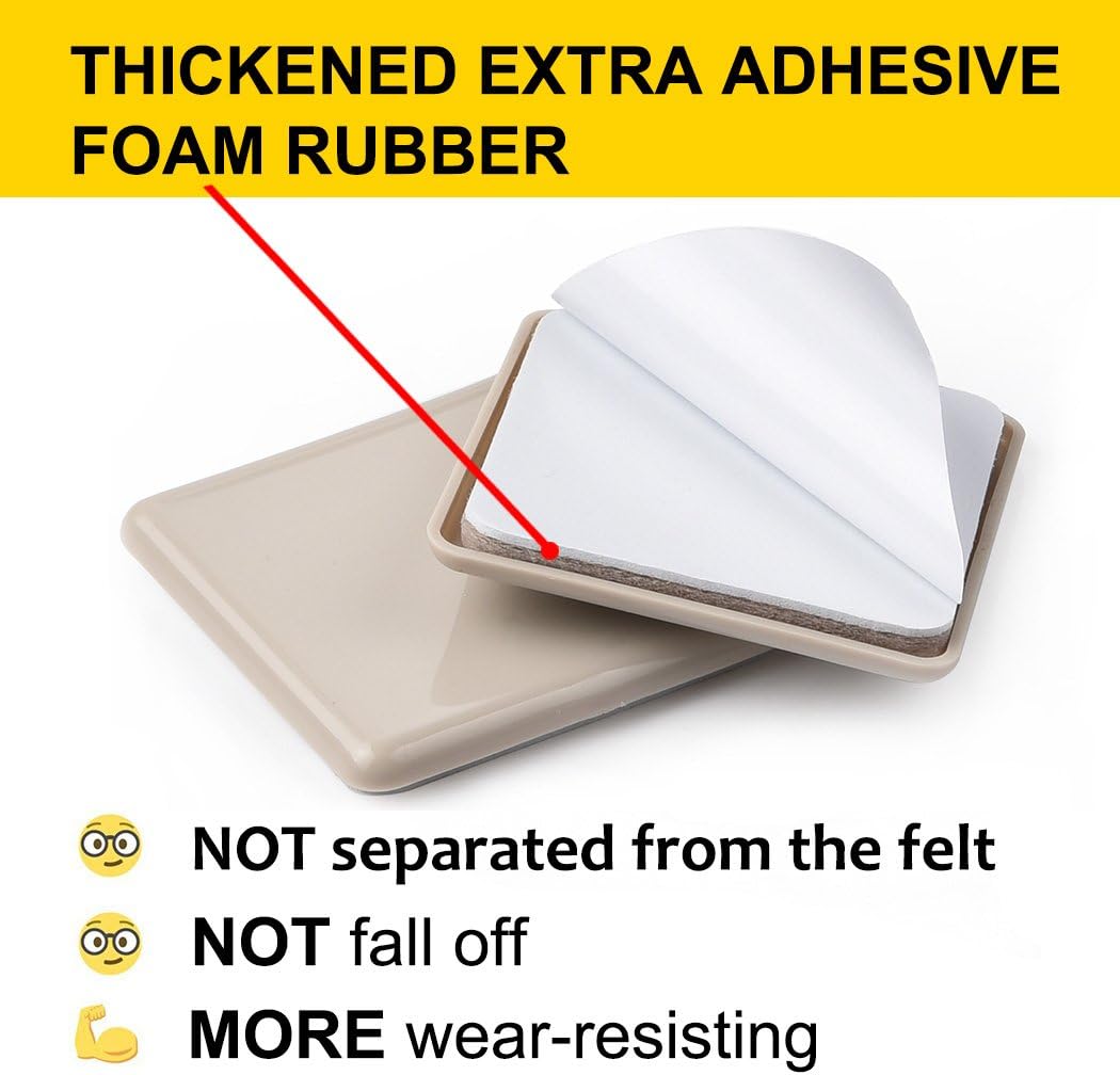 - ☛【Package Includes】- (16 Pack) 2.5 inch square reusable self-adhesive furniture moving sliders, Beige.