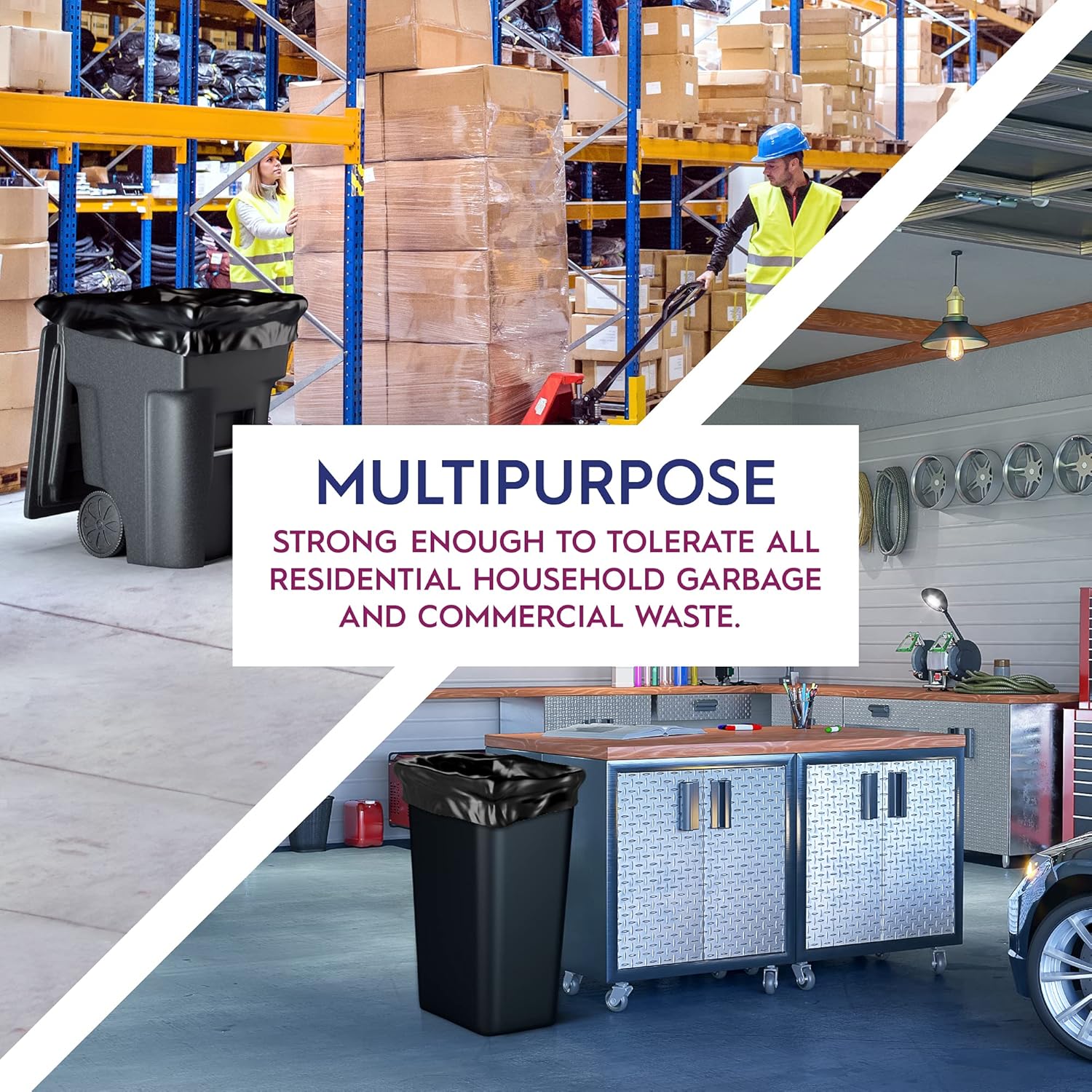 55 Gallon 4mil Trash Can Liners Bags - (35 Count) Capacity & Thick Extra Heavy Duty Strength - Large Garbage, Leak-Proof & Durable, House & Commercial Use Bags - Black